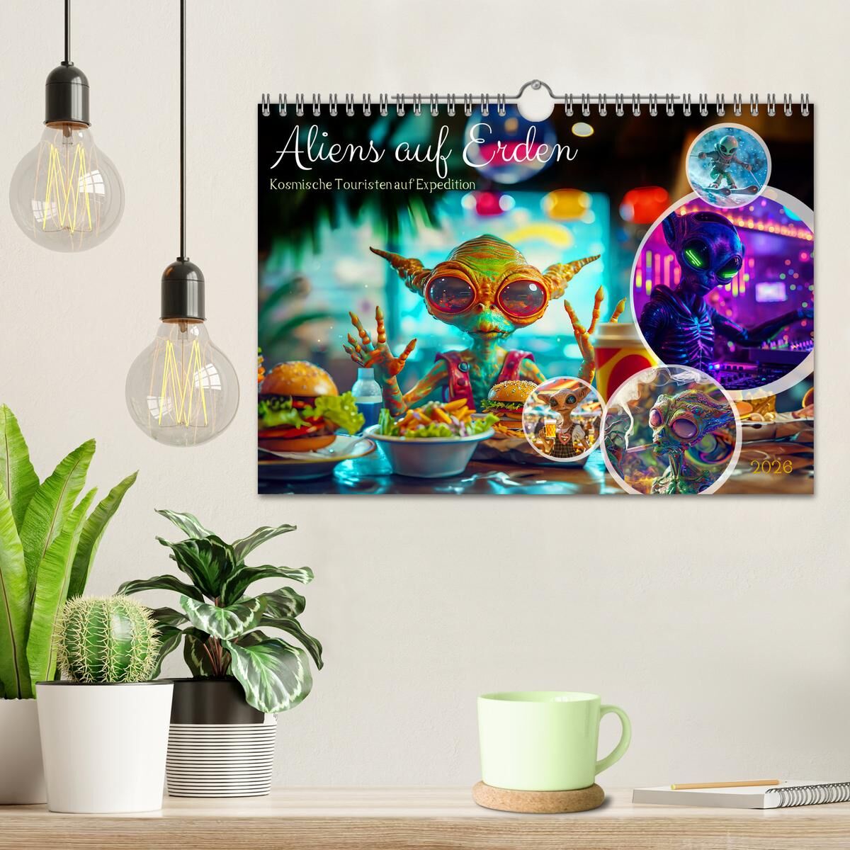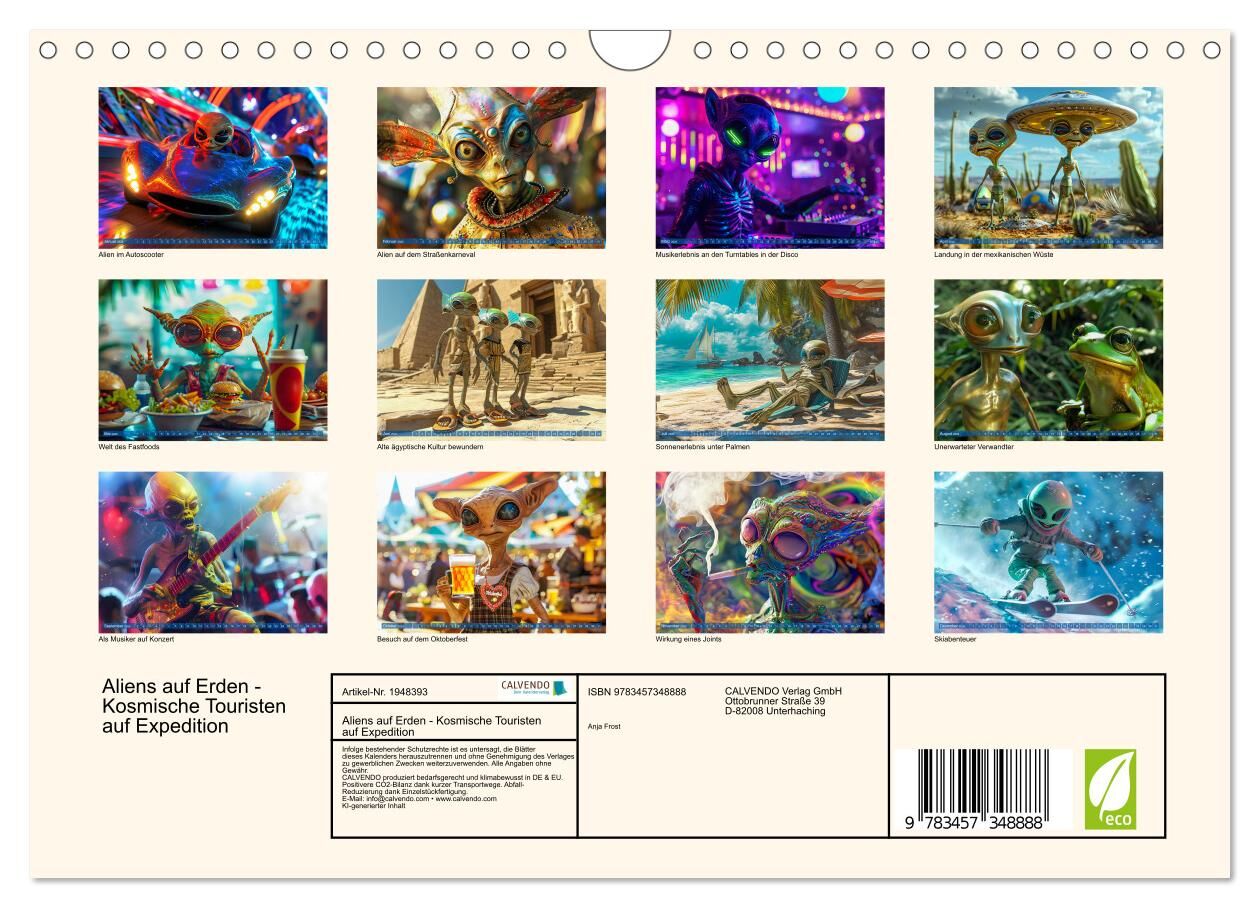 Entdecken Sie mit unserem "Aliens auf Erden" Kalender eine intergalaktische Reise, bei der kosmische Touristen die Wunder der Erde erkunden. Tauchen Sie ein in faszinierende KI-generierten Szenen, während Außerirdische sich beim Skifahren vergnügen, unter Palm...