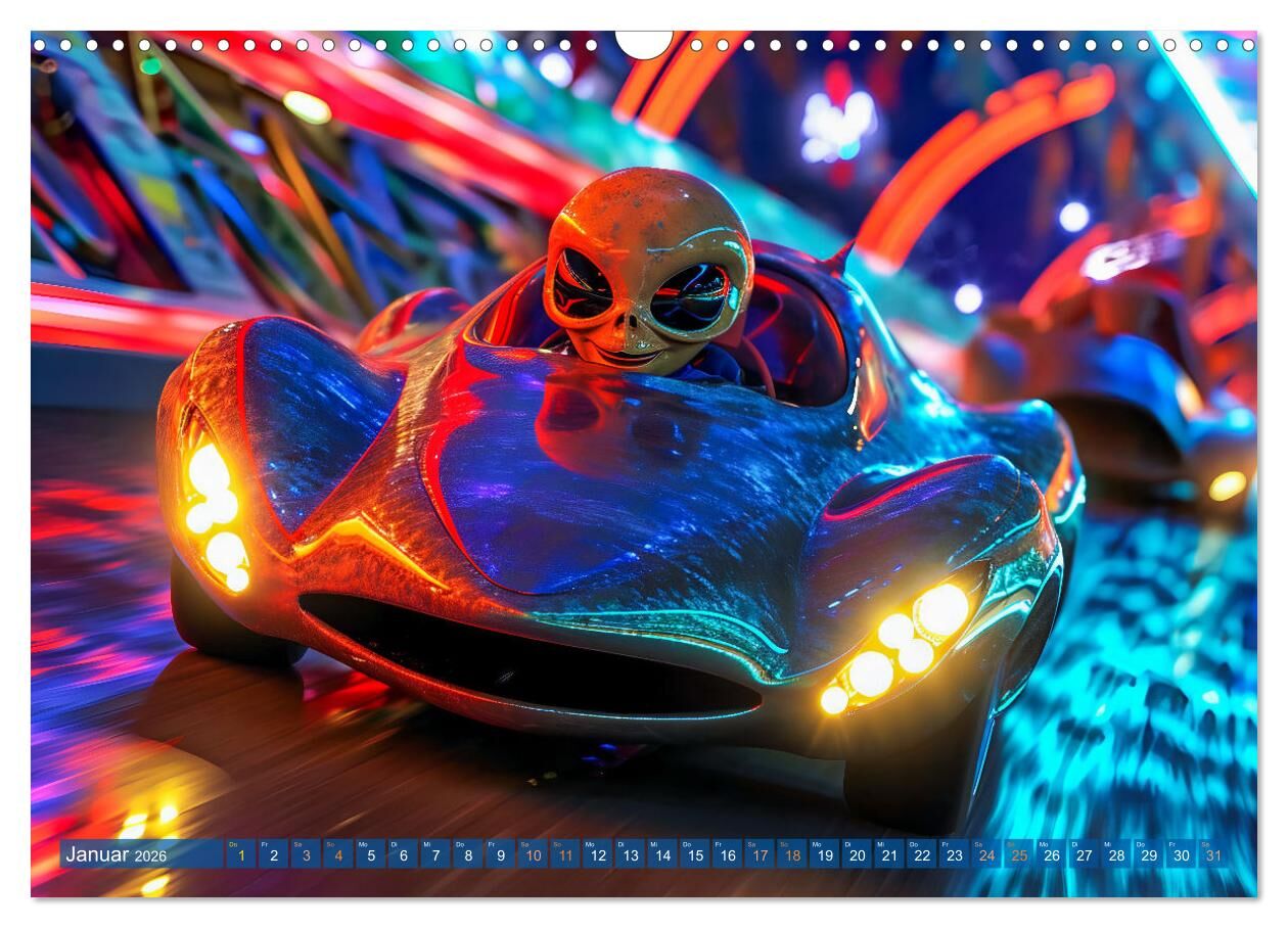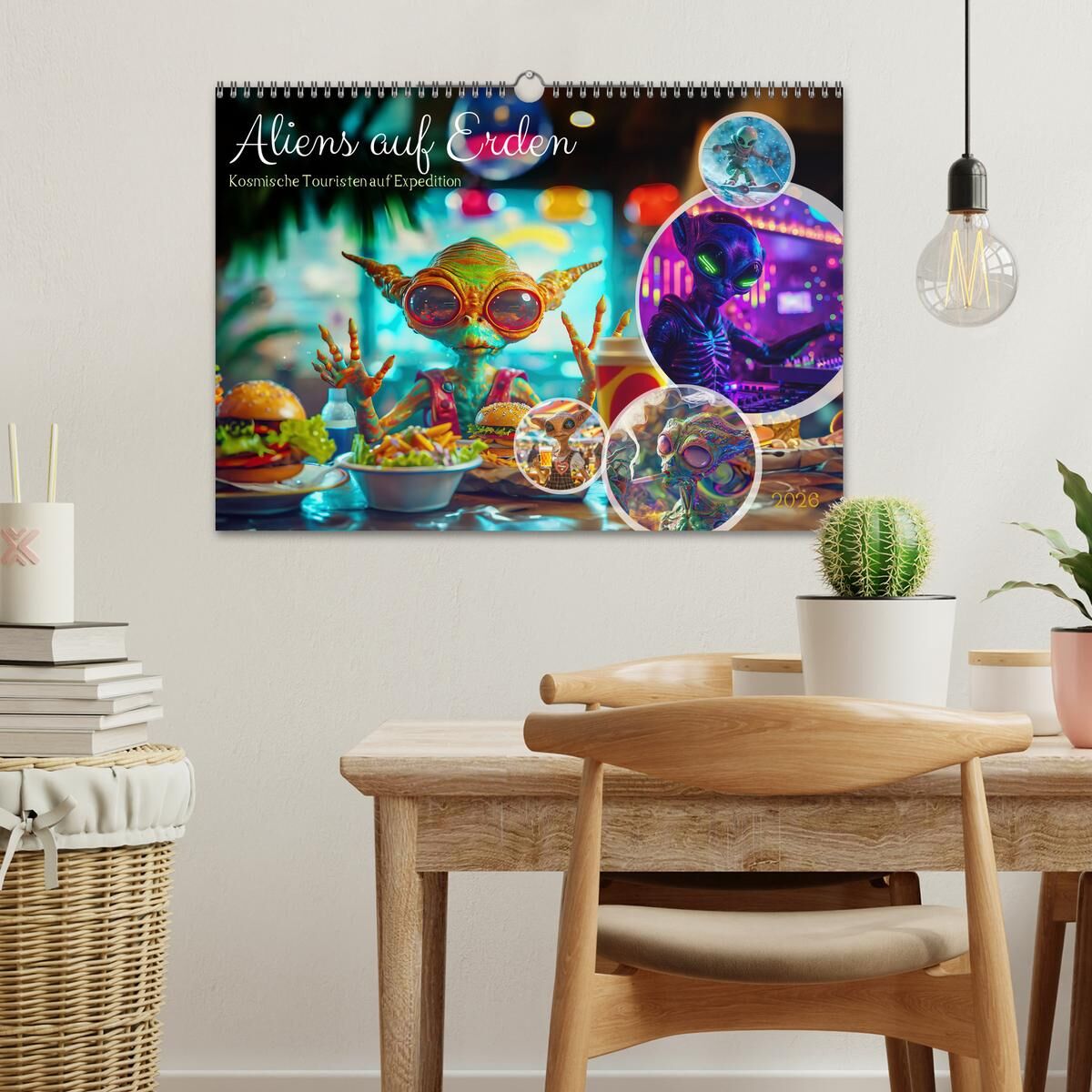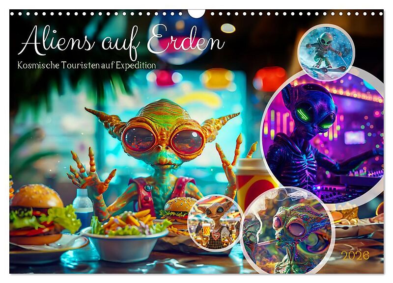 Entdecken Sie mit unserem "Aliens auf Erden" Kalender eine intergalaktische Reise, bei der kosmische Touristen die Wunder der Erde erkunden. Tauchen Sie ein in faszinierende KI-generierten Szenen, während Außerirdische sich beim Skifahren vergnügen, unter Palm...