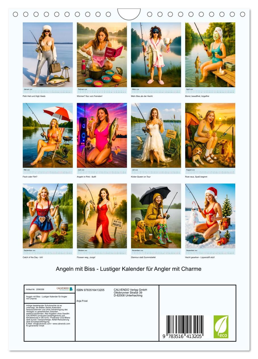 Der Kalender Angeln mit Biss - Lustiger Kalender für Angler mit Charme bringt Monat für Monat KI-generierte gute Laune an die Wand. Mit frechen Titeln wie Petri Heil und High Heels, Catch of the Day - Ich! oder Rute raus, Spaß beginnt ist er das perfekte Gesch...