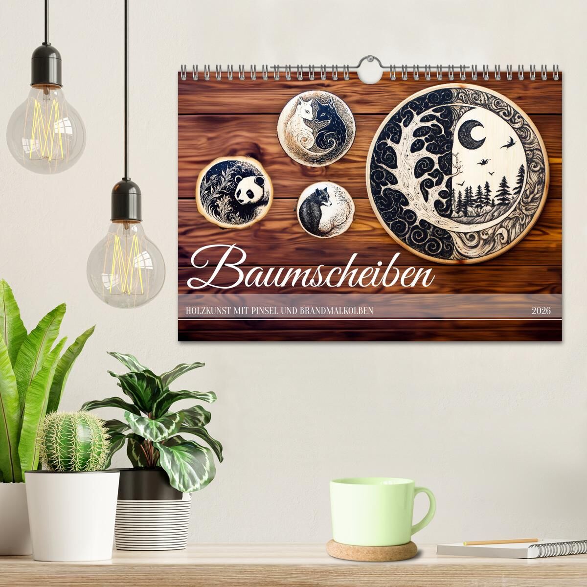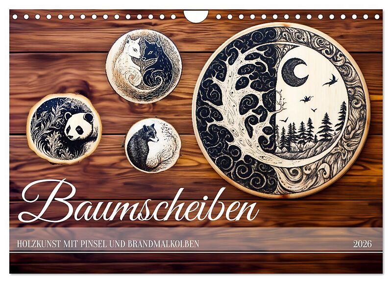 Baumscheiben - Holzkunst mit Pinsel und Brandmalkolben (Wandkalender 2026 DIN A4 quer), CALVENDO Monatskalender