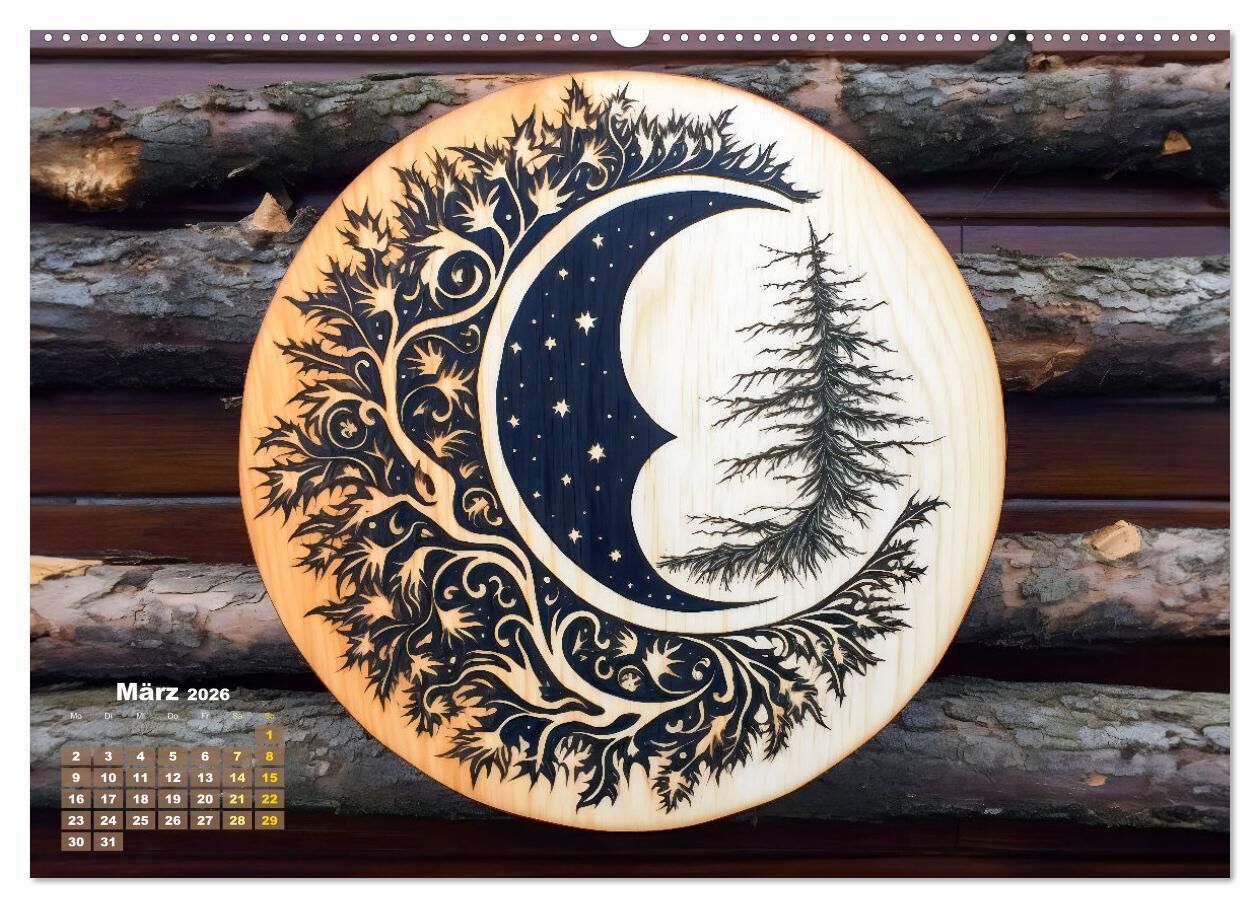 Begib dich auf eine künstlerische Reise durch die Natur mit unserem Kalender 'Baumscheiben - Holzkunst mit Pinsel und Brandmalkolben'. Jeder Monat enthüllt meisterhaft KI-gestaltete Baumscheiben, auf denen Tiere, Pflanzen und abstrakte Motive durch die Kunst v...