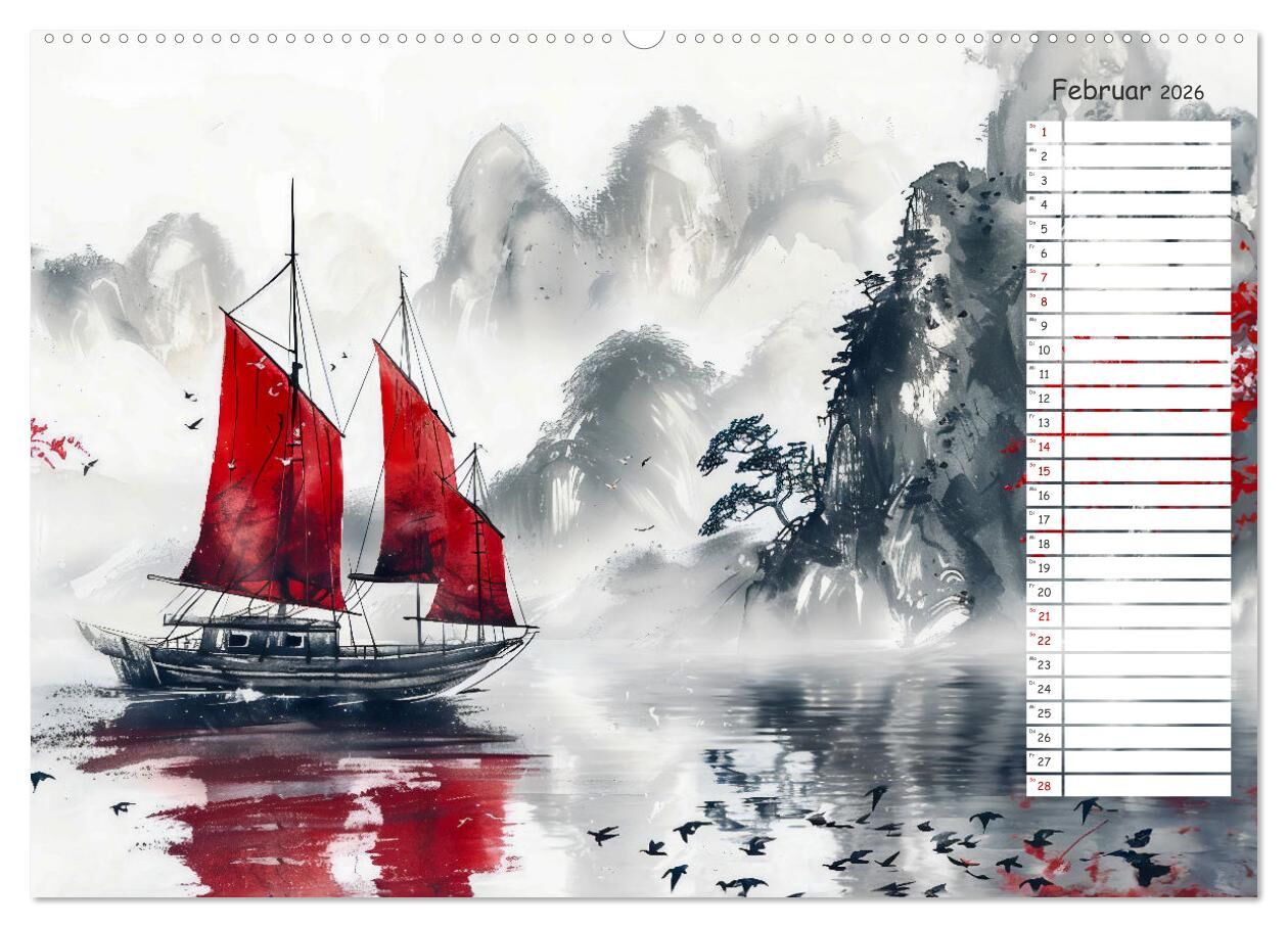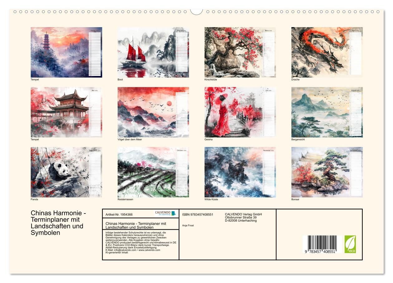 Entdecken Sie die zeitlose Schönheit und kulturelle Vielfalt Chinas mit unserem Terminplaner-Kalender "Chinas Harmonie". Tauchen Sie ein in die faszinierende KI-generierte Tuschepinsel-Welt der chinesischen Landschaften, geprägt von majestätischen Bergen, ruhi...