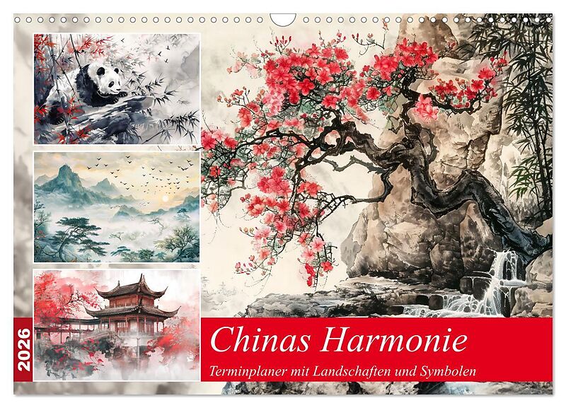 Chinas Harmonie - Terminplaner mit Landschaften und Symbolen (Wandkalender 2026 DIN A3 quer), CALVENDO Monatskalender