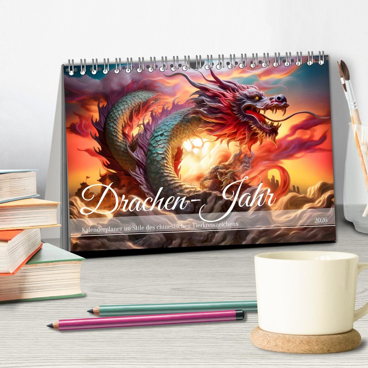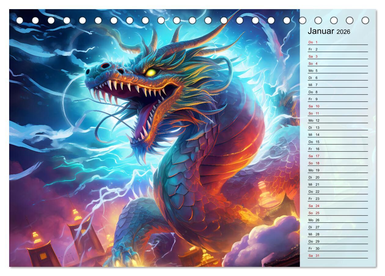 Drachen-Jahr - Kalenderplaner im Stile des chinesischen Tierkreiszeichens (Tischkalender 2026 DIN A5 quer), CALVENDO Monatskalender
