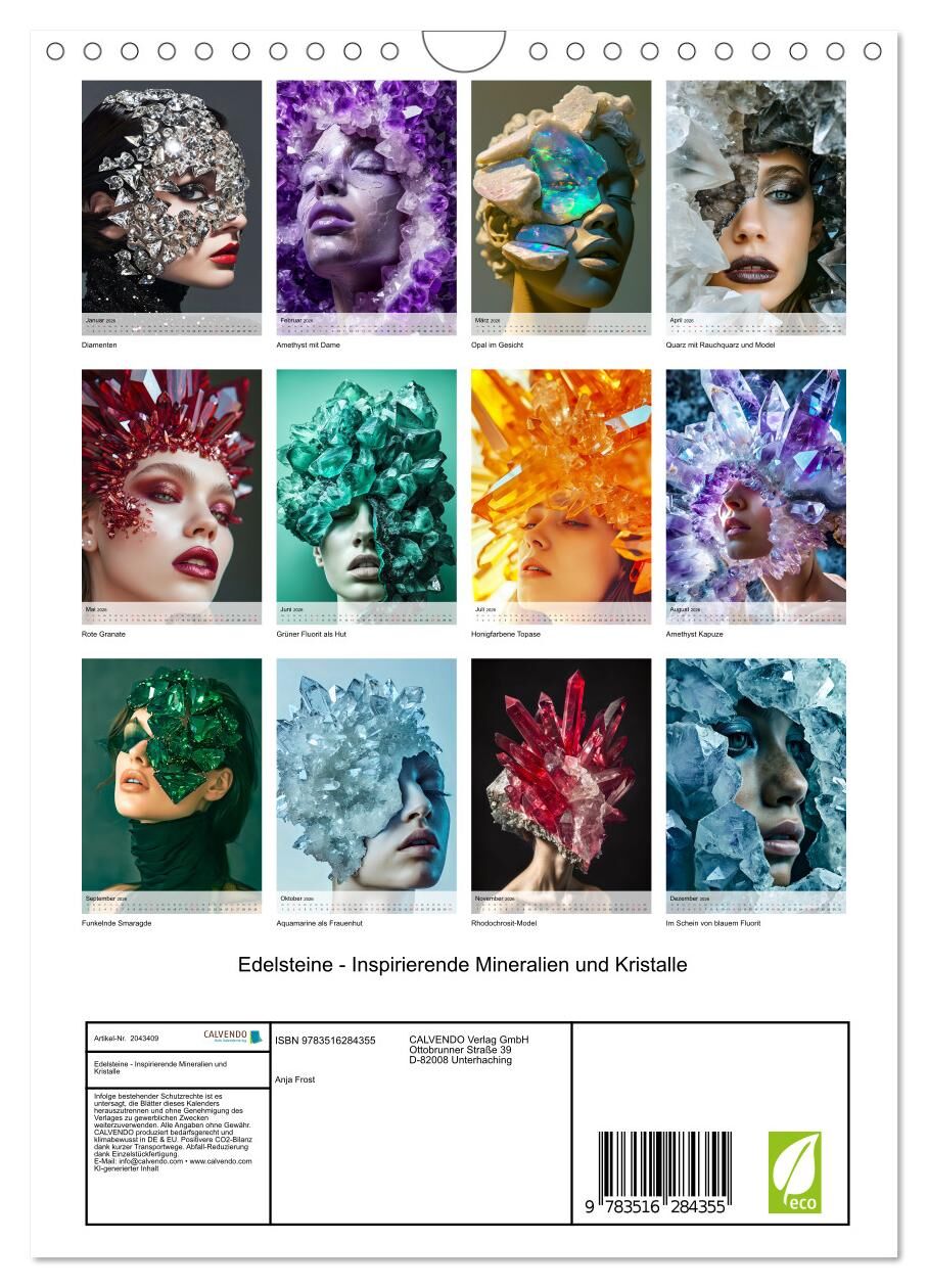 Entdecken Sie die beeindruckende Fusion von Mineralien und Kristallen in unserem Kalender "Edelsteine - Inspirierende Mineralien und Kristalle". Tauchen Sie ein in eine faszinierende Welt, in der die vielfältigen Formen dieser Schätze mit wunderschönen, künstl...