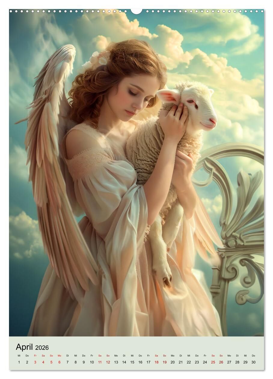 Tauchen Sie ein in die göttliche Welt der Engel mit unserem exquisiten Kalender 'Engel - Eleganz mit himmlischen Attributen'. Jeder Monat präsentiert himmlische Wesen, umgeben von Symbolen wie Schafen, Tauben und himmlischer Musik. Die kunstvollen, KI-generier...