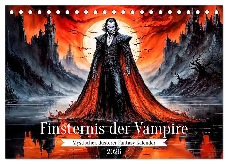 Der Finsternis der Vampire - Mystischer, düsterer Fantasy-Kalender entführt dich in eine Welt voller dunkler Schönheit und unsterblicher Faszination. Mit 12 atmosphärischen KI-generierten Illustrationen zeigt dieser Kalender sowohl verführerische als auch furc...