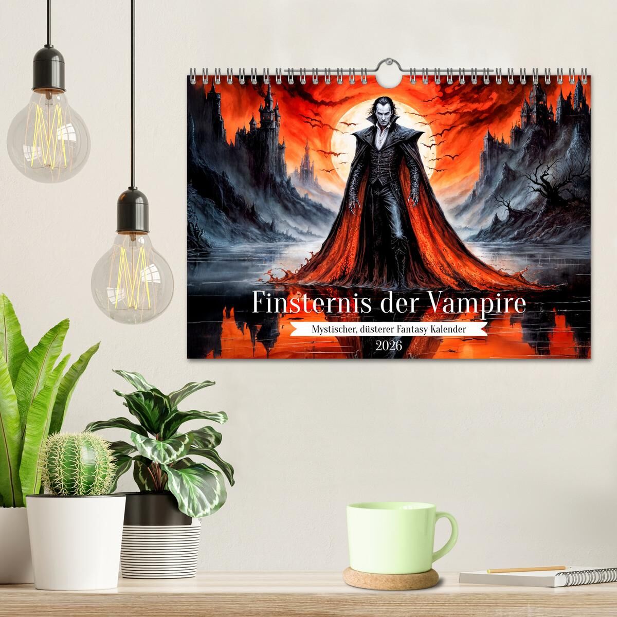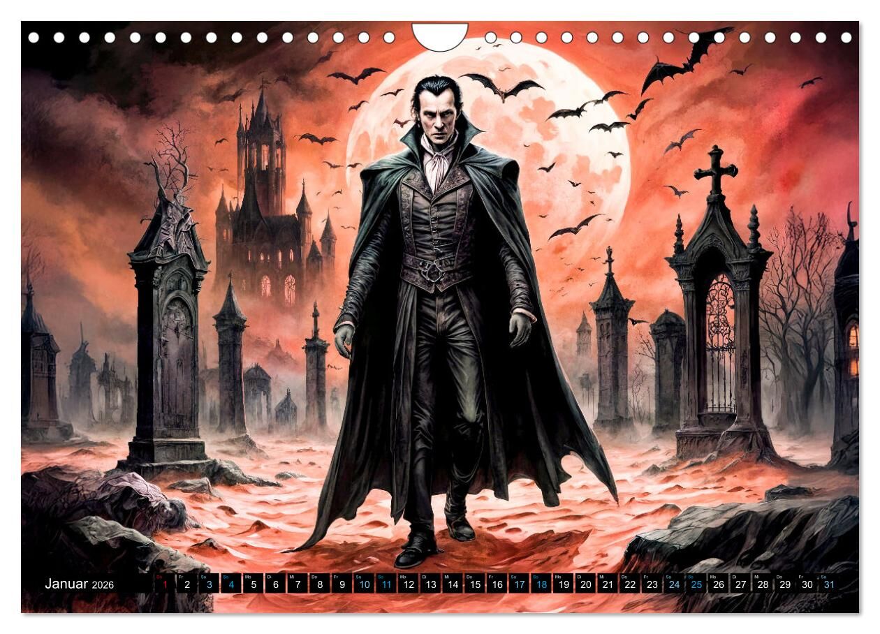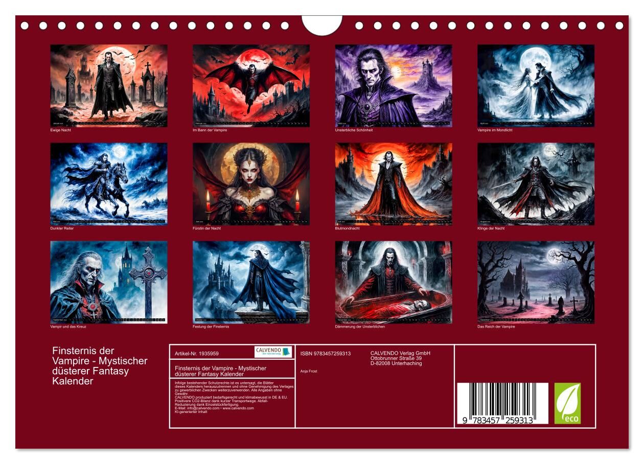 Der Finsternis der Vampire - Mystischer, düsterer Fantasy-Kalender entführt dich in eine Welt voller dunkler Schönheit und unsterblicher Faszination. Mit 12 atmosphärischen KI-generierten Illustrationen zeigt dieser Kalender sowohl verführerische als auch furc...