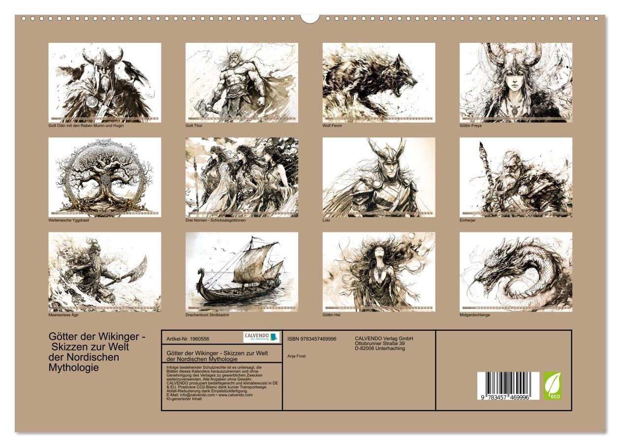 Götter der Wikinger - Skizzen zur Welt der Nordischen Mythologie (hochwertiger Premium Wandkalender 2026 DIN A2 quer), Kunstdruck in Hochglanz