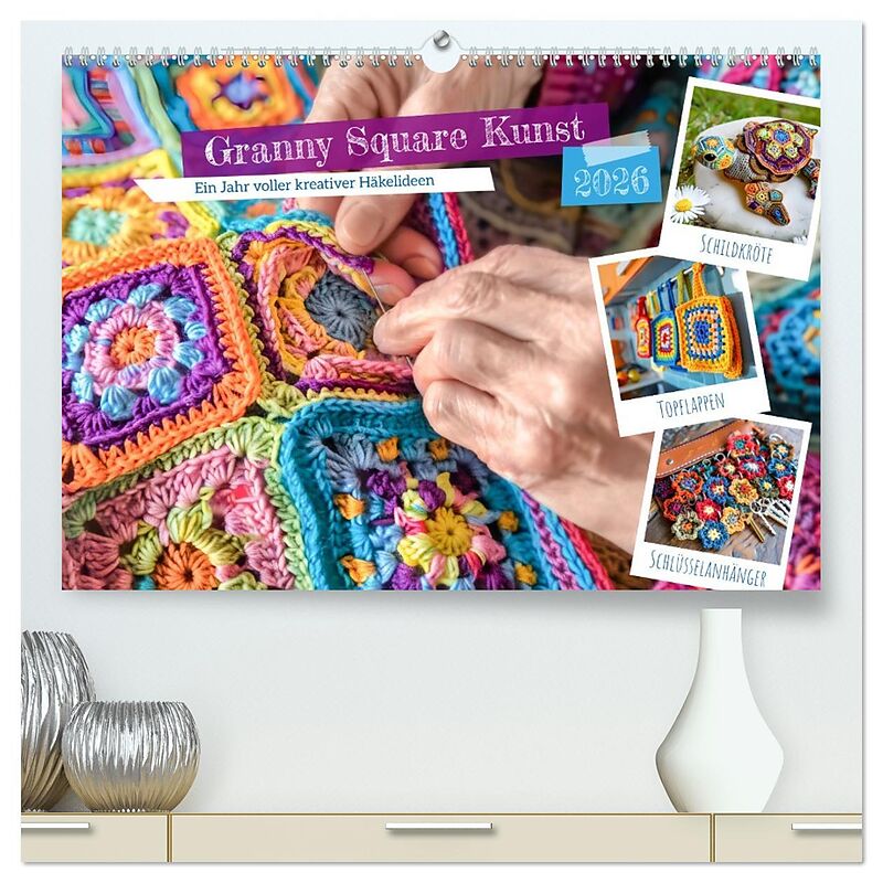 Granny Square Kunst - Ein Jahr voller kreativer Häkelideen (hochwertiger Premium Wandkalender 2026 DIN A2 quer), Kunstdruck in Hochglanz