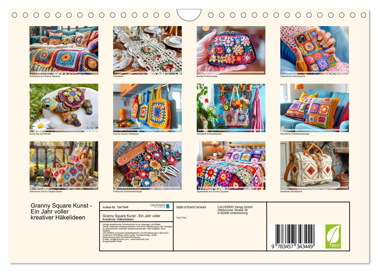 Entdecken Sie die wunderbare Welt der Häkelkunst mit unserem Kalender "Granny Square Kunst - Ein Jahr voller kreativer Häkelideen". Tauchen Sie ein in die KI-generierte Vielfalt der Möglichkeiten, die Granny Squares bieten, von gemütlichen Decken und stilvolle...