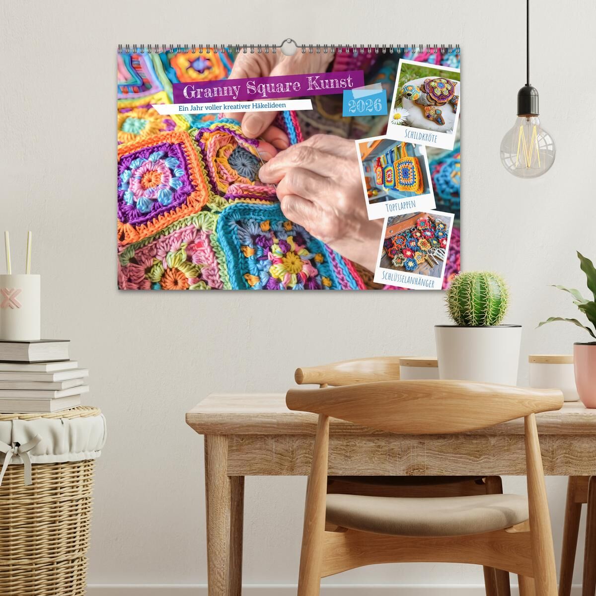 Granny Square Kunst - Ein Jahr voller kreativer Häkelideen (Wandkalender 2026 DIN A3 quer), CALVENDO Monatskalender