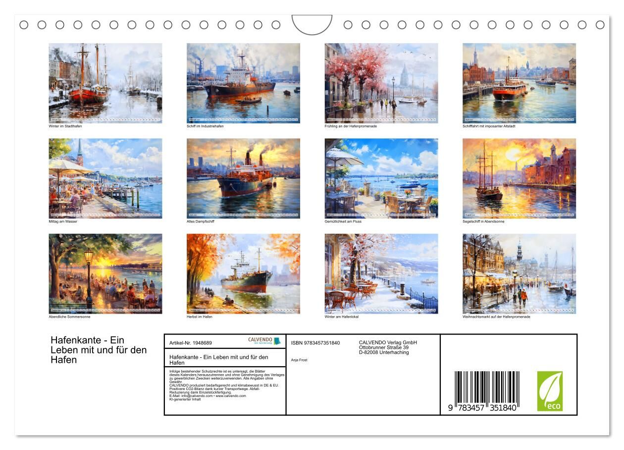 Erleben Sie das pulsierende Leben entlang der Hafenkante mit unserem faszinierenden Kalender 'Hafenkante - Ein Leben mit und für den Hafen'. Jeder Monat fängt in impressionistischer Eleganz die einzigartigen Facetten des Hafenlebens ein, von Frachtschiffen, le...