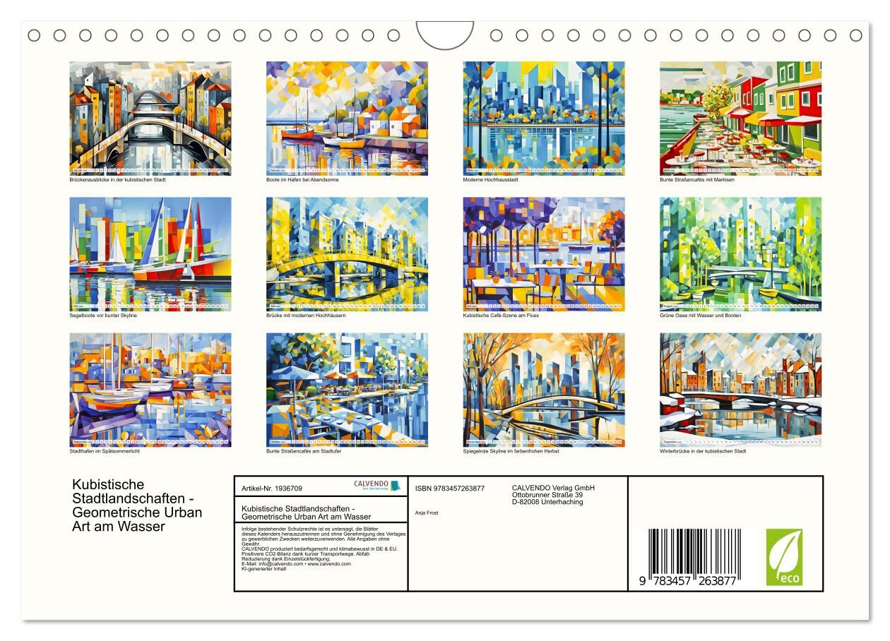 Tauchen Sie ein in die faszinierende Welt der kubistischen Stadtlandschaften am Wasser. Dieser KI-generierte Kalender präsentiert 12 einzigartige Stadtansichten, geprägt von leuchtenden Farben, geometrischen Formen und spiegelnden Wasserflächen. Von modernen S...