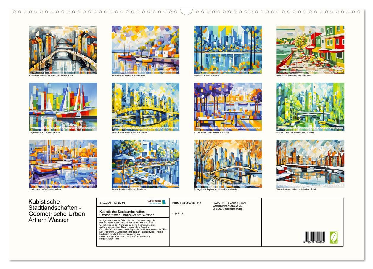 Tauchen Sie ein in die faszinierende Welt der kubistischen Stadtlandschaften am Wasser. Dieser KI-generierte Kalender präsentiert 12 einzigartige Stadtansichten, geprägt von leuchtenden Farben, geometrischen Formen und spiegelnden Wasserflächen. Von modernen S...