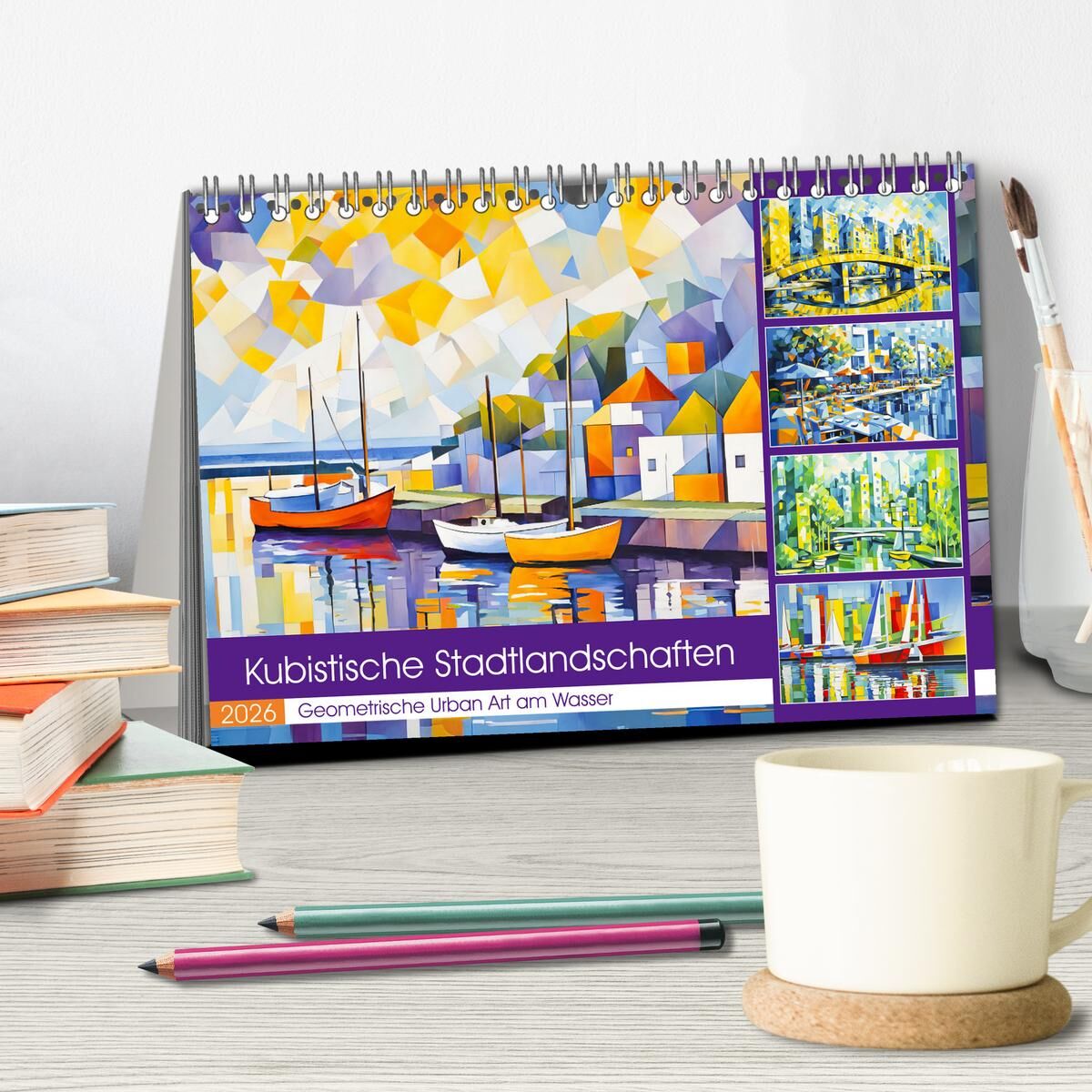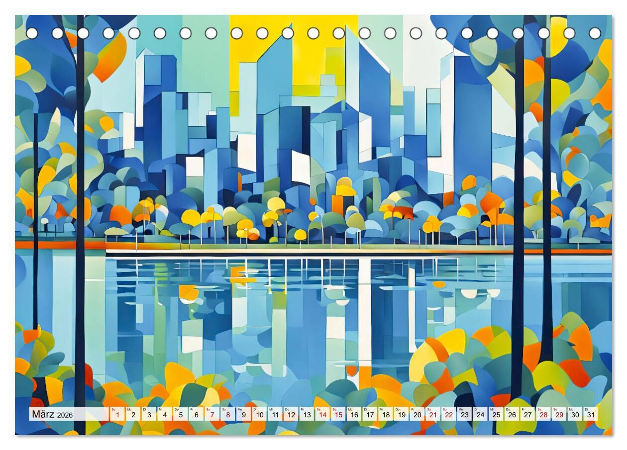 Kubistische Stadtlandschaften - Geometrische Urban Art am Wasser (Tischkalender 2026 DIN A5 quer), CALVENDO Monatskalender