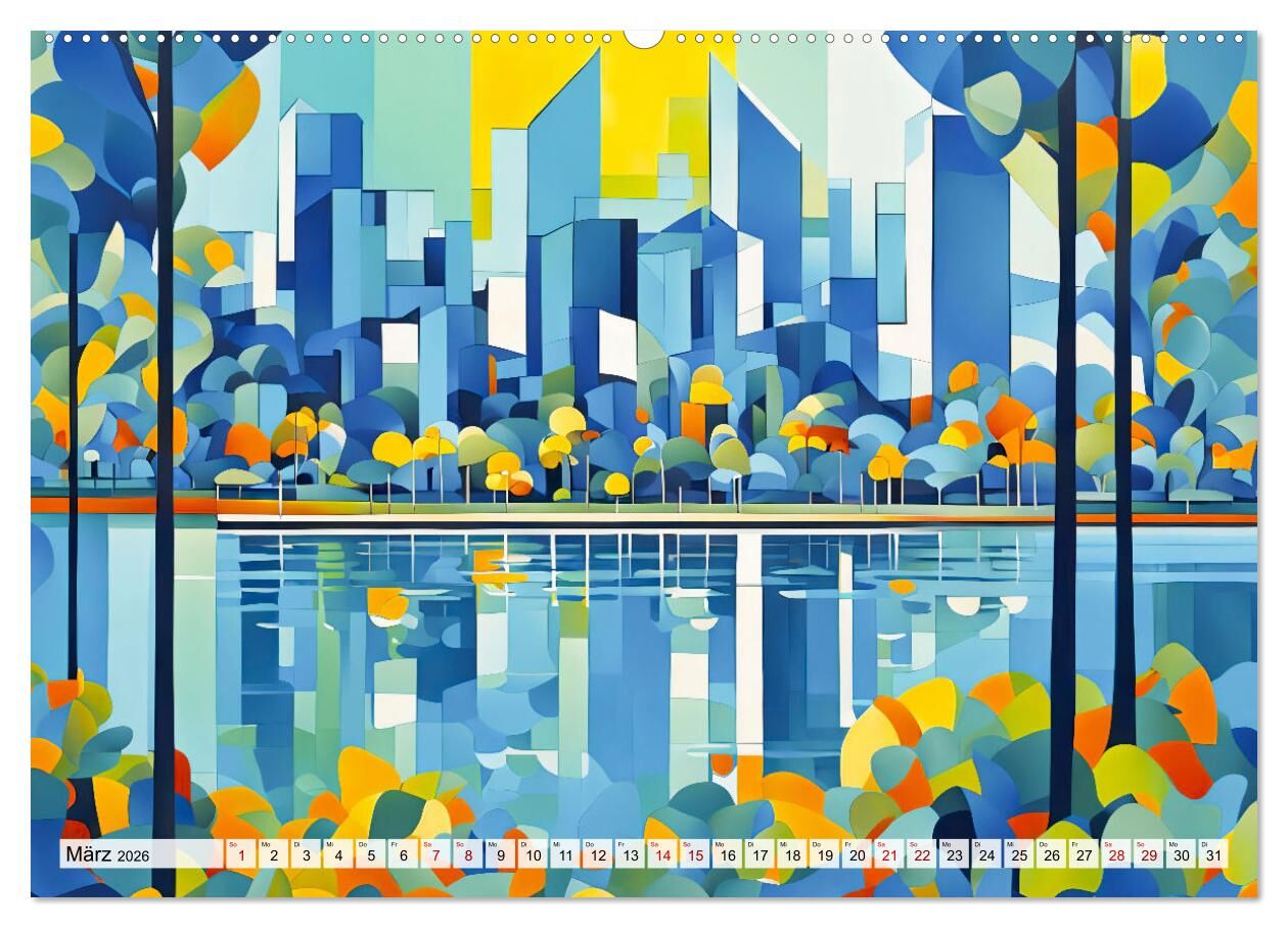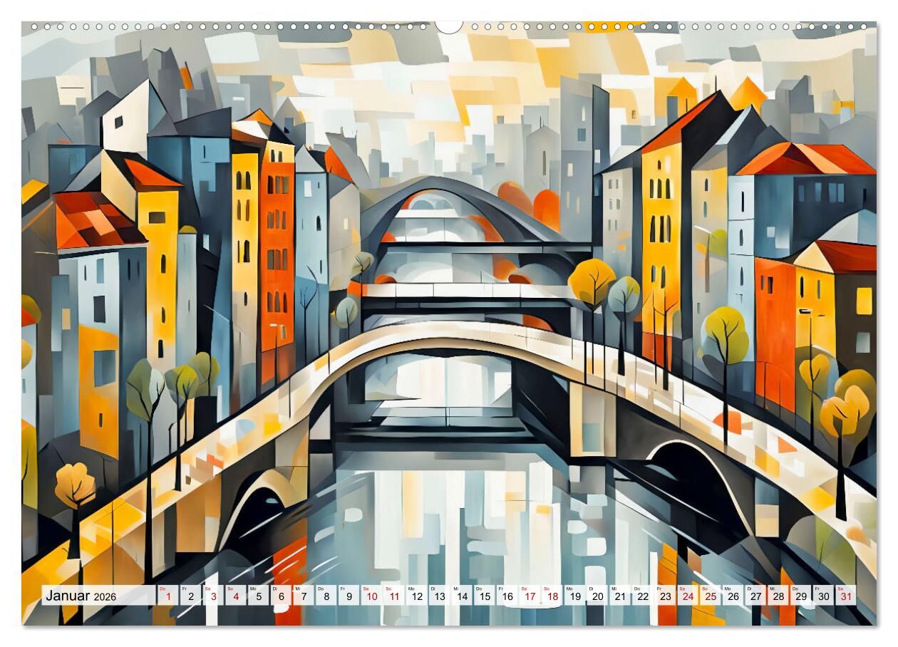 Kubistische Stadtlandschaften - Geometrische Urban Art am Wasser (hochwertiger Premium Wandkalender 2026 DIN A2 quer), Kunstdruck in Hochglanz
