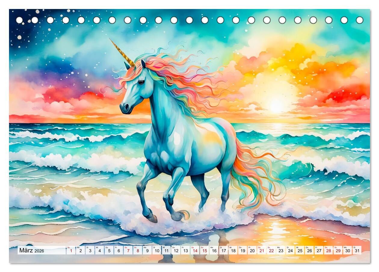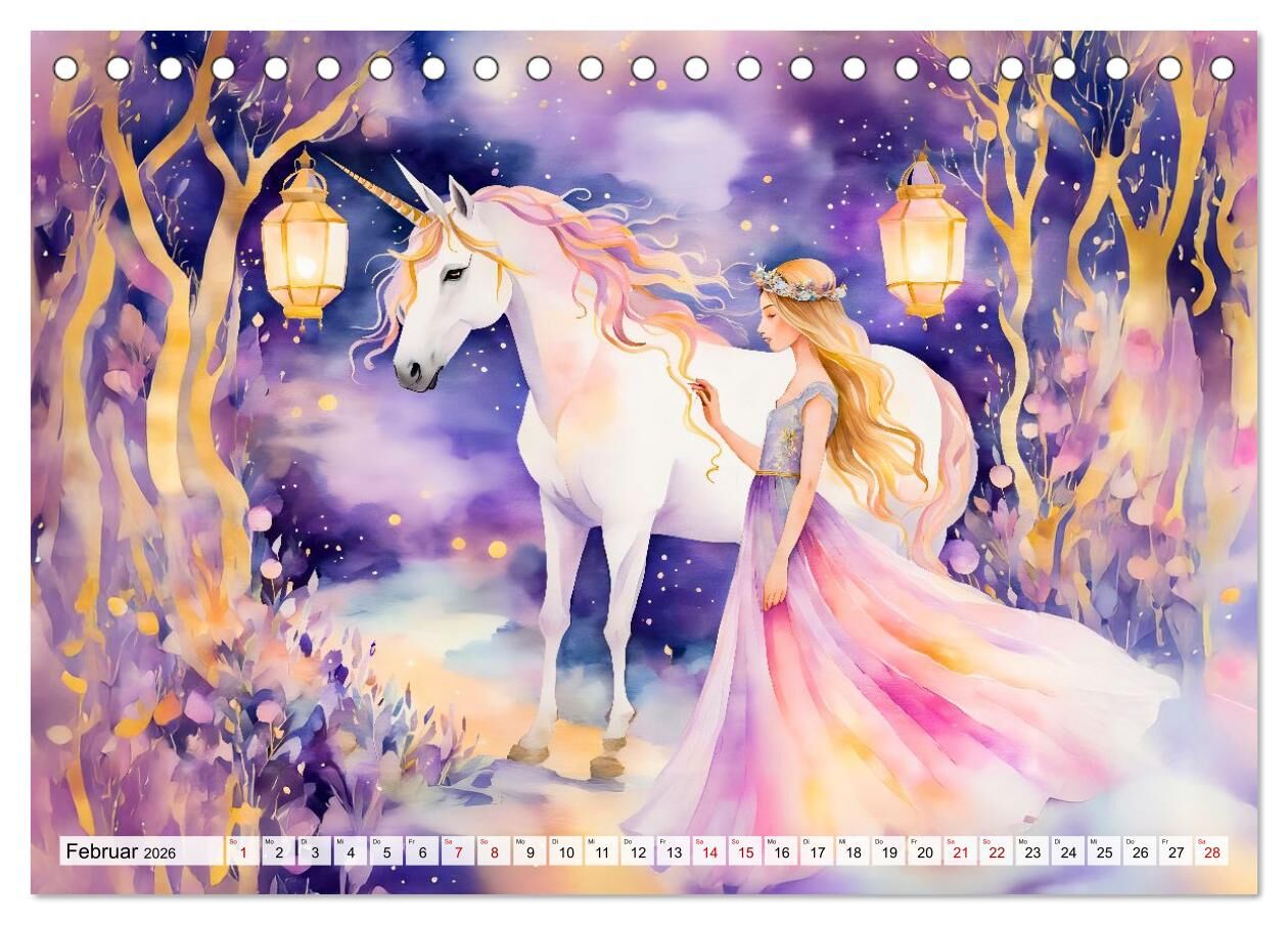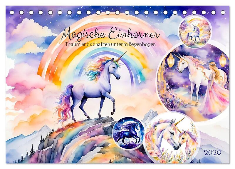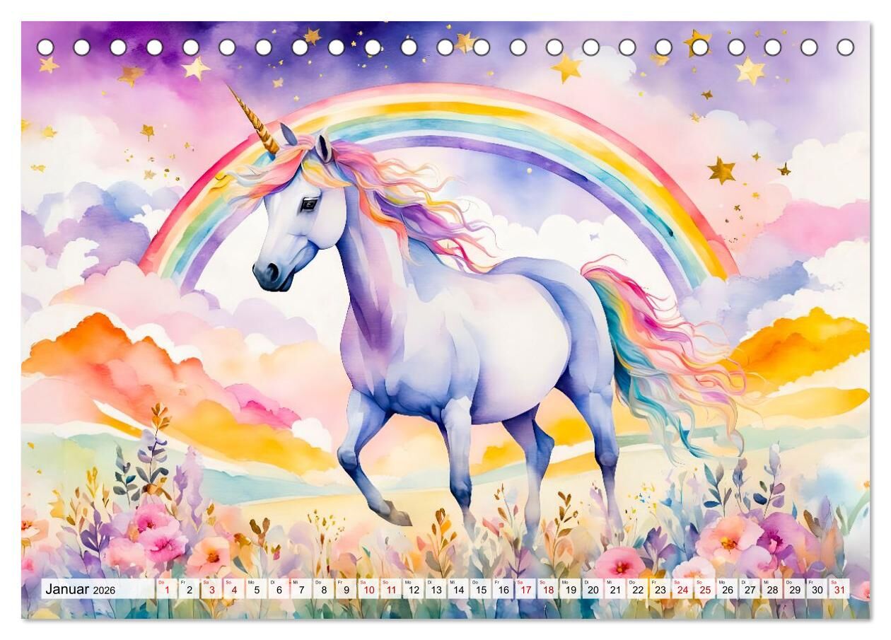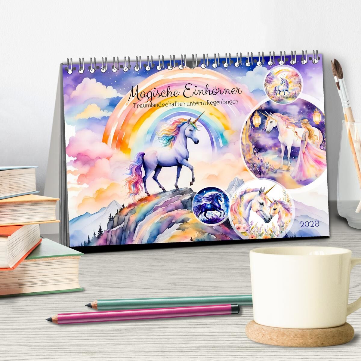 Magische Einhörner - Traumlandschaften unterm Regenbogen (Tischkalender 2026 DIN A5 quer), CALVENDO Monatskalender