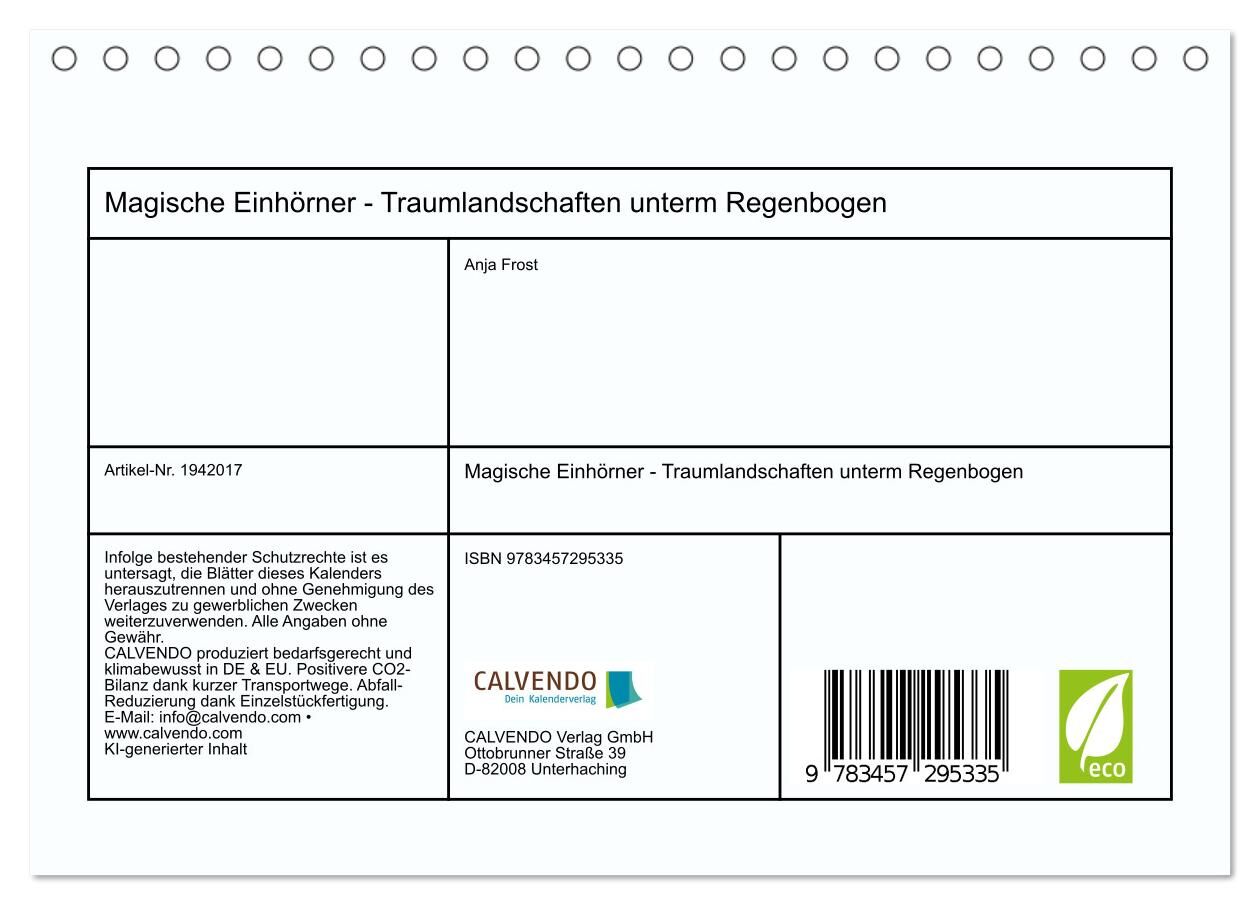 Der Kalender Magische Einhörner - Traumlandschaften unterm Regenbogen entführt dich in eine Welt voller Fantasie und Farben. Dieser liebevoll gestaltete KI-generierte Kalender zeigt zwölf bezaubernde Aquarellmotive mit Einhörnern in märchenhaften Landschaften,...