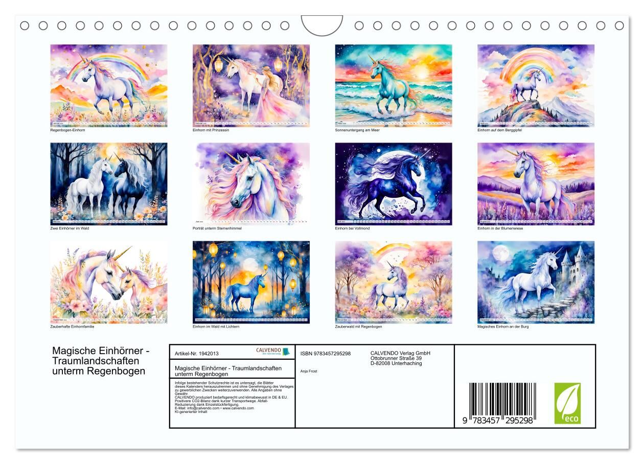 Der Kalender Magische Einhörner - Traumlandschaften unterm Regenbogen entführt dich in eine Welt voller Fantasie und Farben. Dieser liebevoll gestaltete KI-generierte Kalender zeigt zwölf bezaubernde Aquarellmotive mit Einhörnern in märchenhaften Landschaften,...