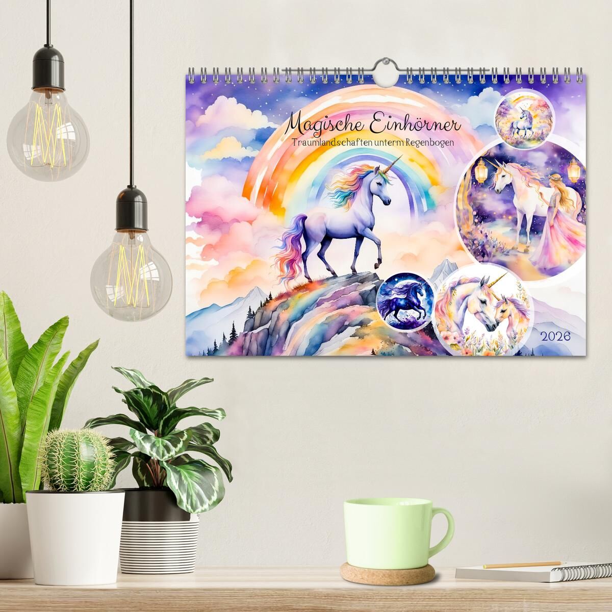 Magische Einhörner - Traumlandschaften unterm Regenbogen (Wandkalender 2026 DIN A4 quer), CALVENDO Monatskalender