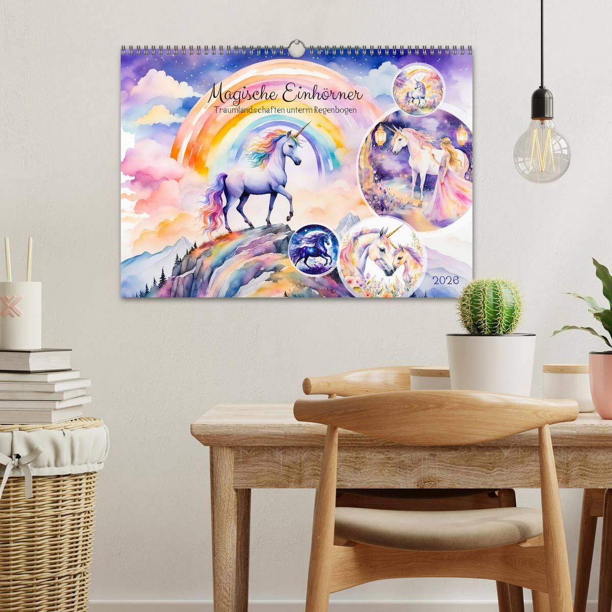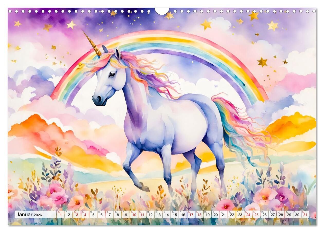 Magische Einhörner - Traumlandschaften unterm Regenbogen (Wandkalender 2026 DIN A3 quer), CALVENDO Monatskalender