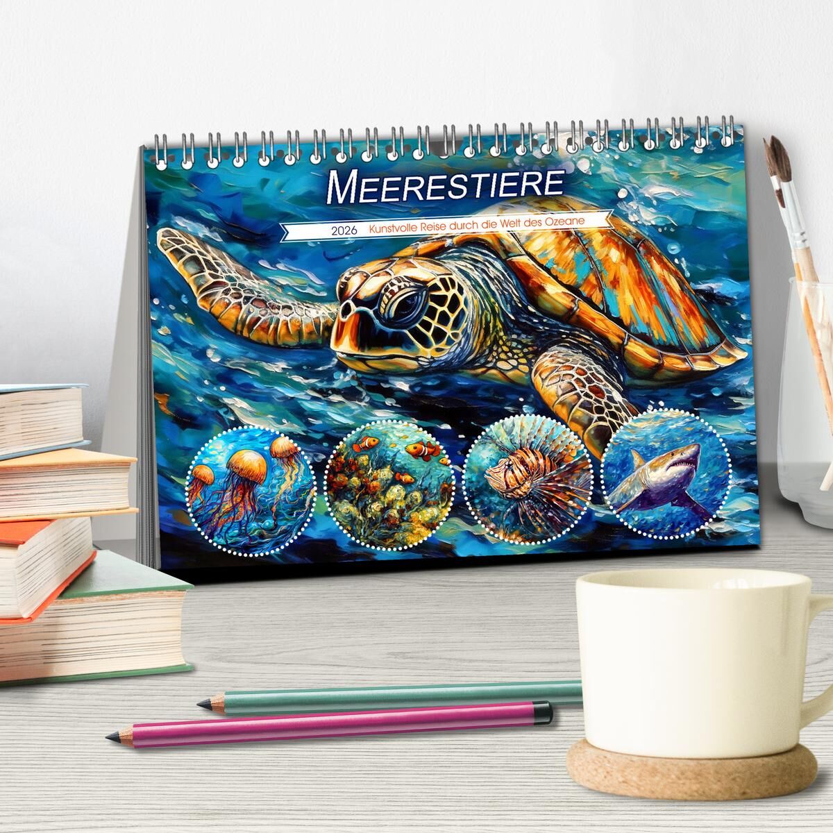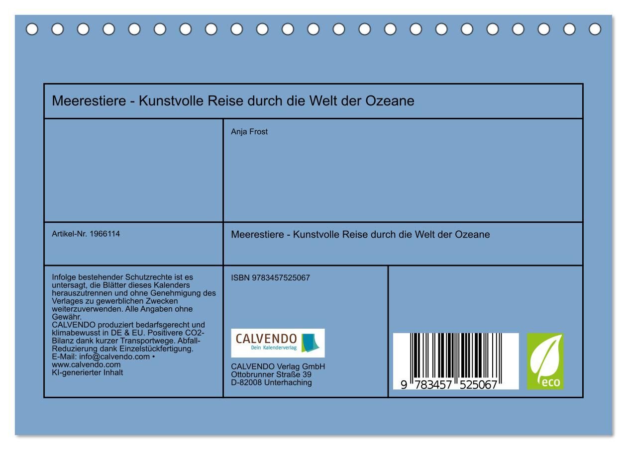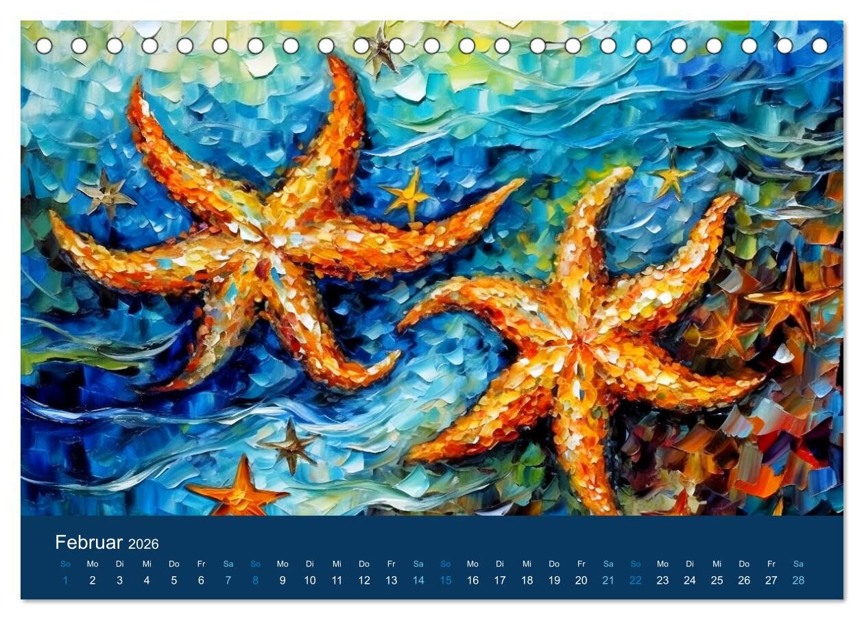Meerestiere - Kunstvolle Reise durch die Welt der Ozeane (Tischkalender 2026 DIN A5 quer), CALVENDO Monatskalender