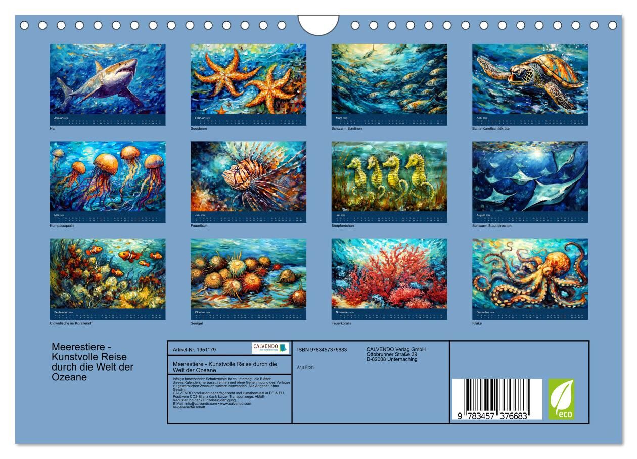 Meerestiere - Kunstvolle Reise durch die Welt der Ozeane (Wandkalender 2026 DIN A4 quer), CALVENDO Monatskalender
