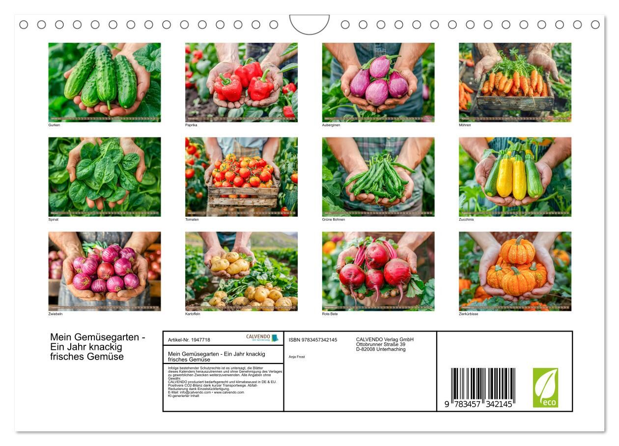 Tauchen Sie ein in die Welt des Gemüsegärtners mit unserem Kalender 'Mein Gemüsegarten - Ein Jahr knackig frisches Gemüse'. Entdecken Sie zwölf Monate lang die Schönheit und KI-generierter Vielfalt von frischem Gemüse, von knackigen Karotten bis hin zu prächti...