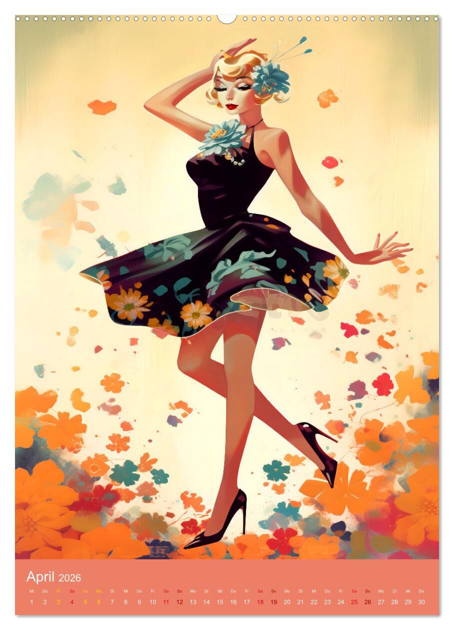 Modeskizzen - Hommage an die Kleider der 50er und 60er Jahre (hochwertiger Premium Wandkalender 2026 DIN A2 hoch), Kunstdruck in Hochglanz