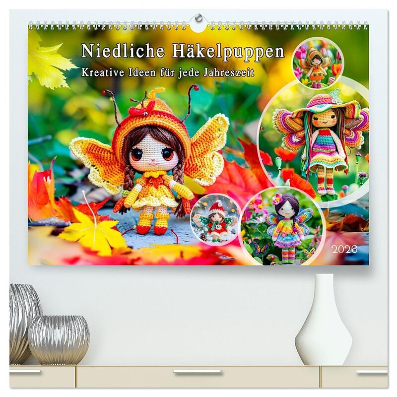 Der Kalender "Niedliche Häkelpuppen - Kreative Ideen für jede Jahreszeit" zeigt zauberhafte KI-generierte Häkelpuppen mit Flügeln, die harmonisch in die jeweilige Jahreszeit eingebettet sind. Umgeben von passenden Blumen und liebevollen Details, entstehen stim...