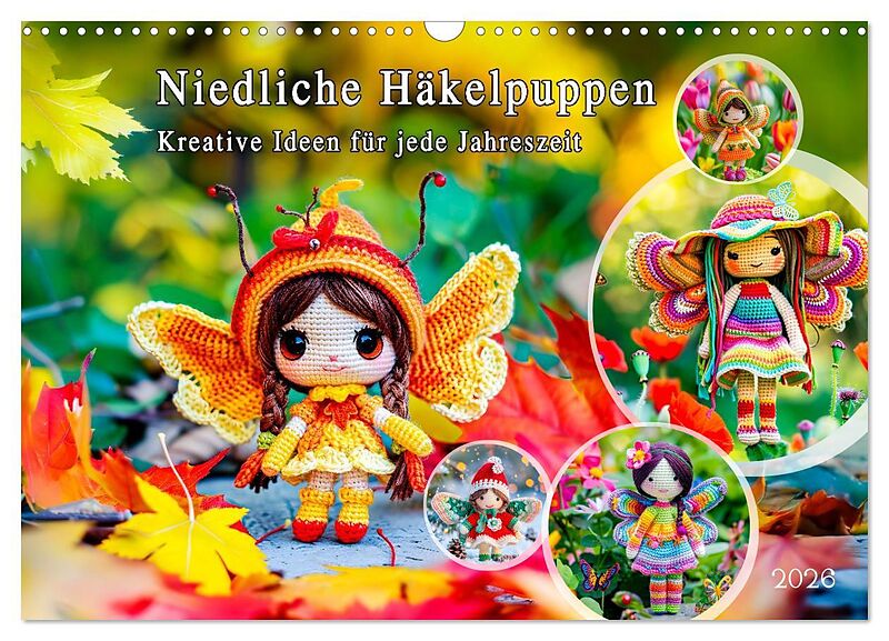 Niedliche Häkelpuppen - Kreative Ideen für jede Jahreszeit (Wandkalender 2026 DIN A3 quer), CALVENDO Monatskalender