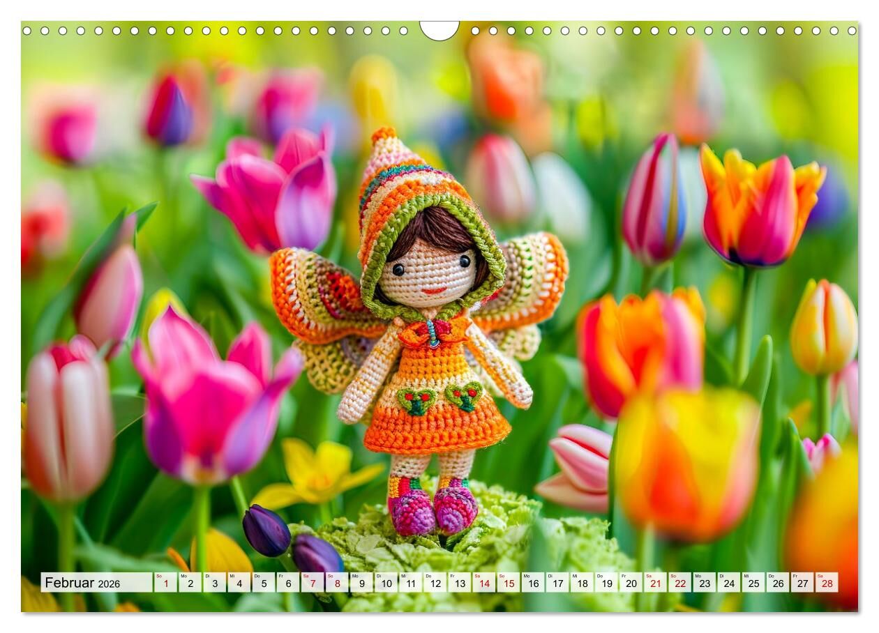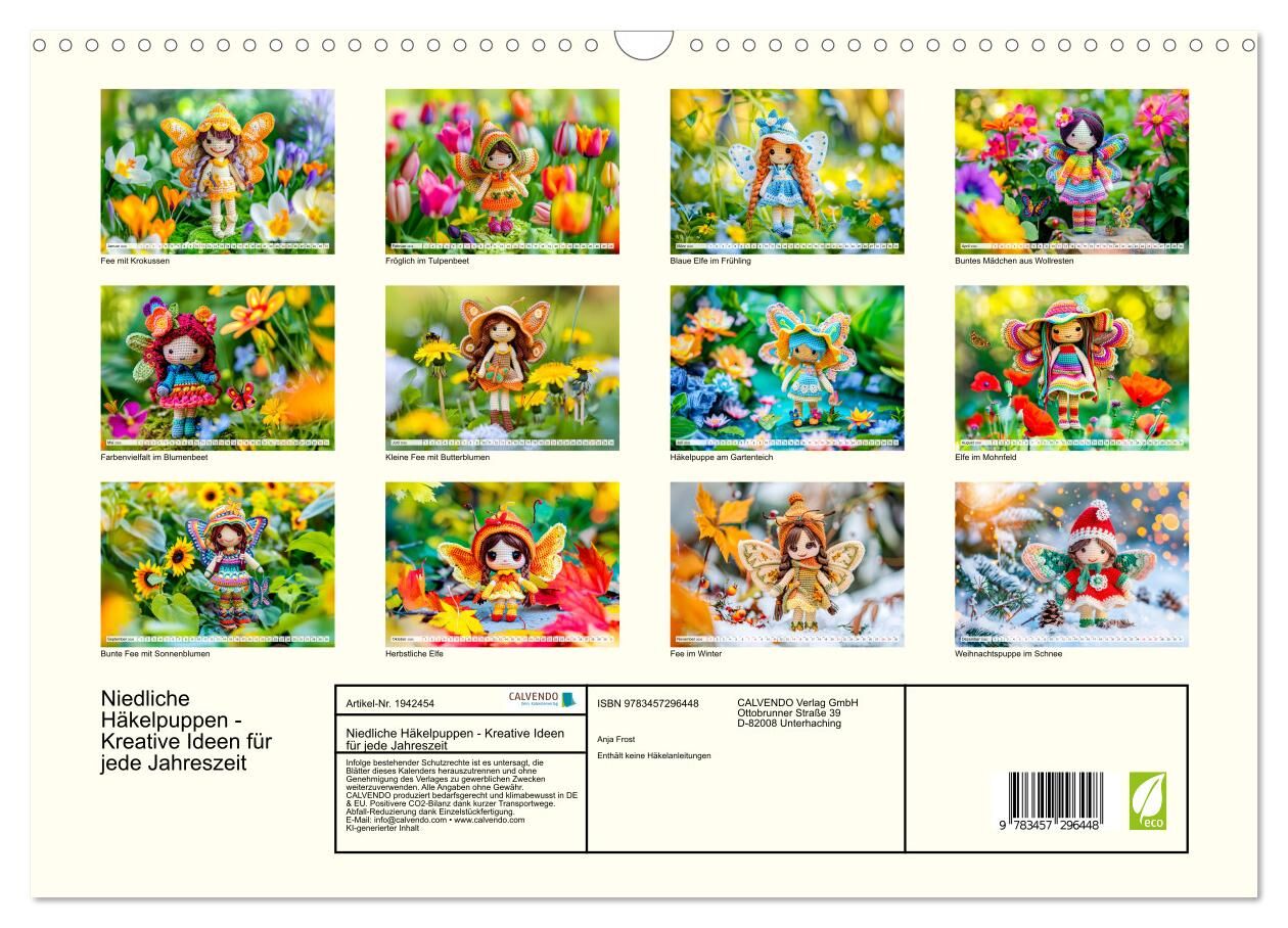 Der Kalender "Niedliche Häkelpuppen - Kreative Ideen für jede Jahreszeit" zeigt zauberhafte KI-generierte Häkelpuppen mit Flügeln, die harmonisch in die jeweilige Jahreszeit eingebettet sind. Umgeben von passenden Blumen und liebevollen Details, entstehen stim...