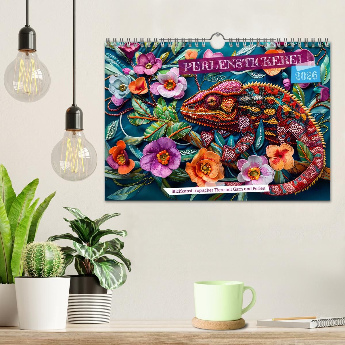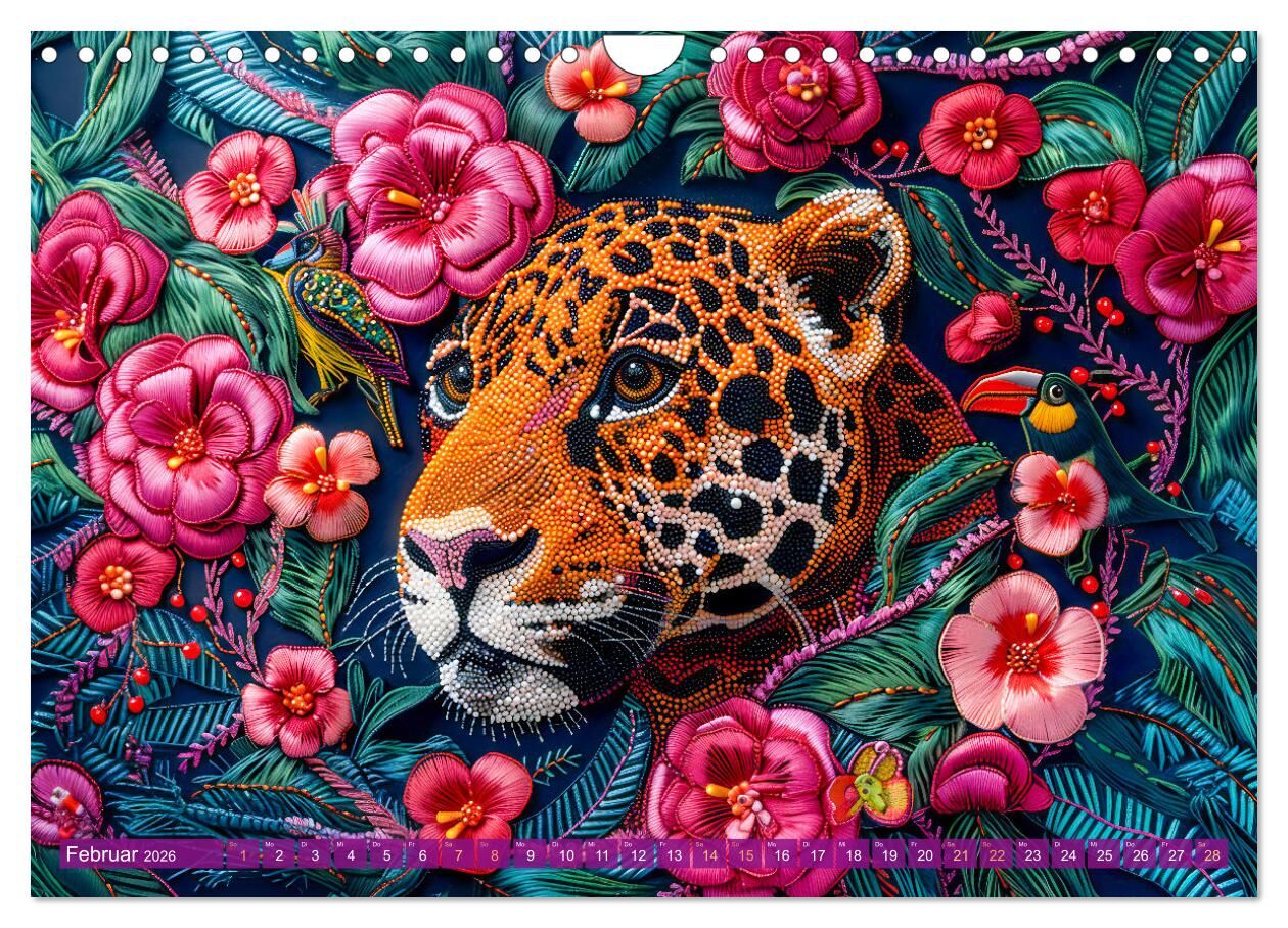 Perlenstickerei - Stickkunst tropischer Tiere mit Garn und Perlen (Wandkalender 2026 DIN A4 quer), CALVENDO Monatskalender