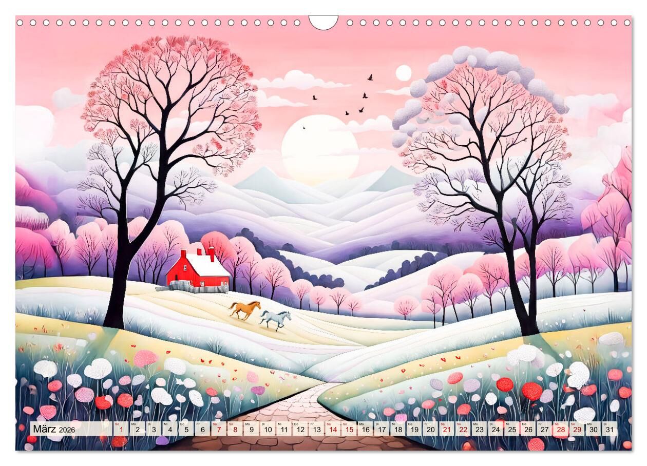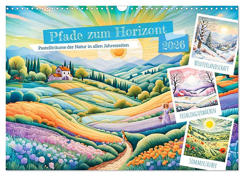 Pfade zum Horizont - Pastellträume der Natur in allen Jahreszeiten (Wandkalender 2026 DIN A3 quer), CALVENDO Monatskalender