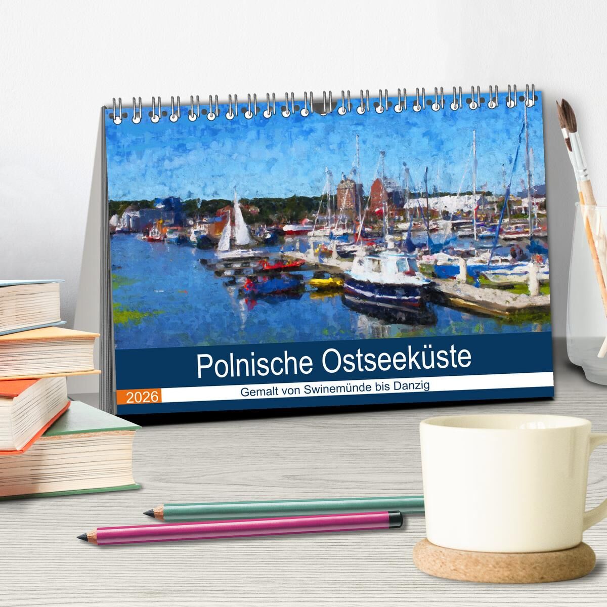 Polnische Ostseeküste - Gemalt von Swinemünde bis Danzig (Tischkalender 2026 DIN A5 quer), CALVENDO Monatskalender
