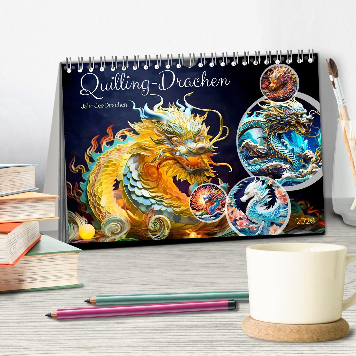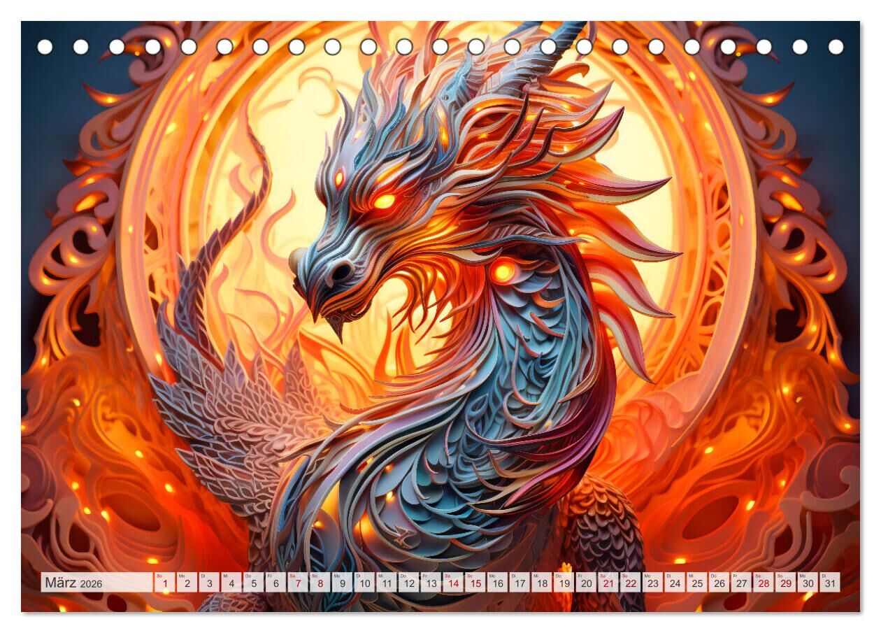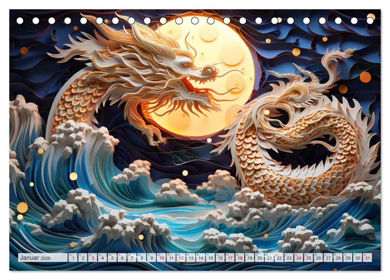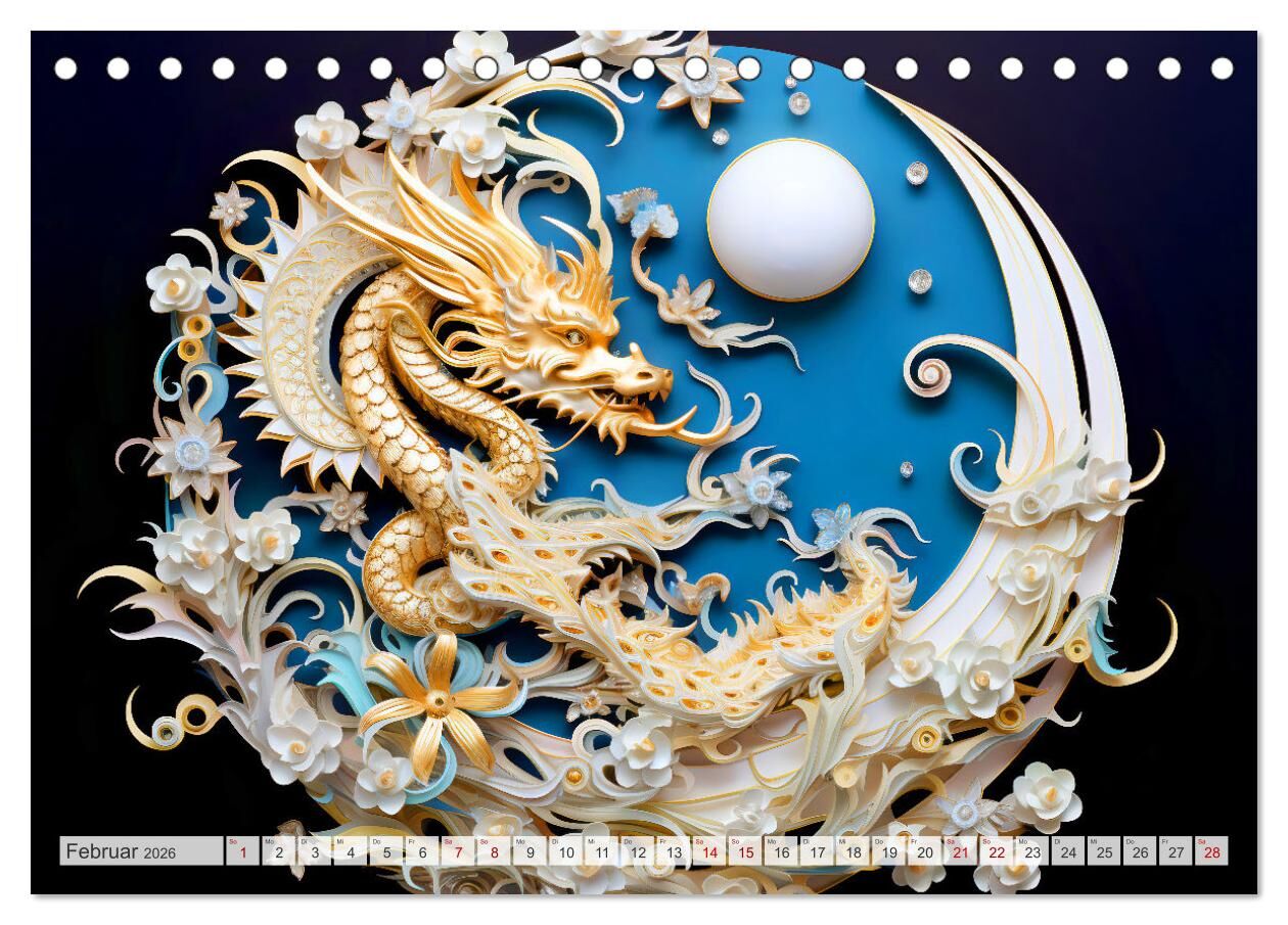 Quilling-Drachen - Jahr des Drachen (Tischkalender 2026 DIN A5 quer), CALVENDO Monatskalender