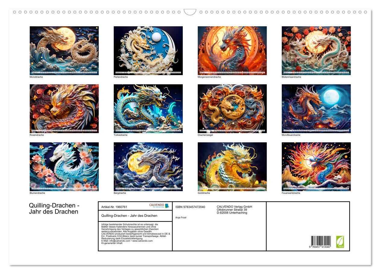 Quilling-Drachen - Jahr des Drachen (Wandkalender 2026 DIN A2 quer), CALVENDO Monatskalender
