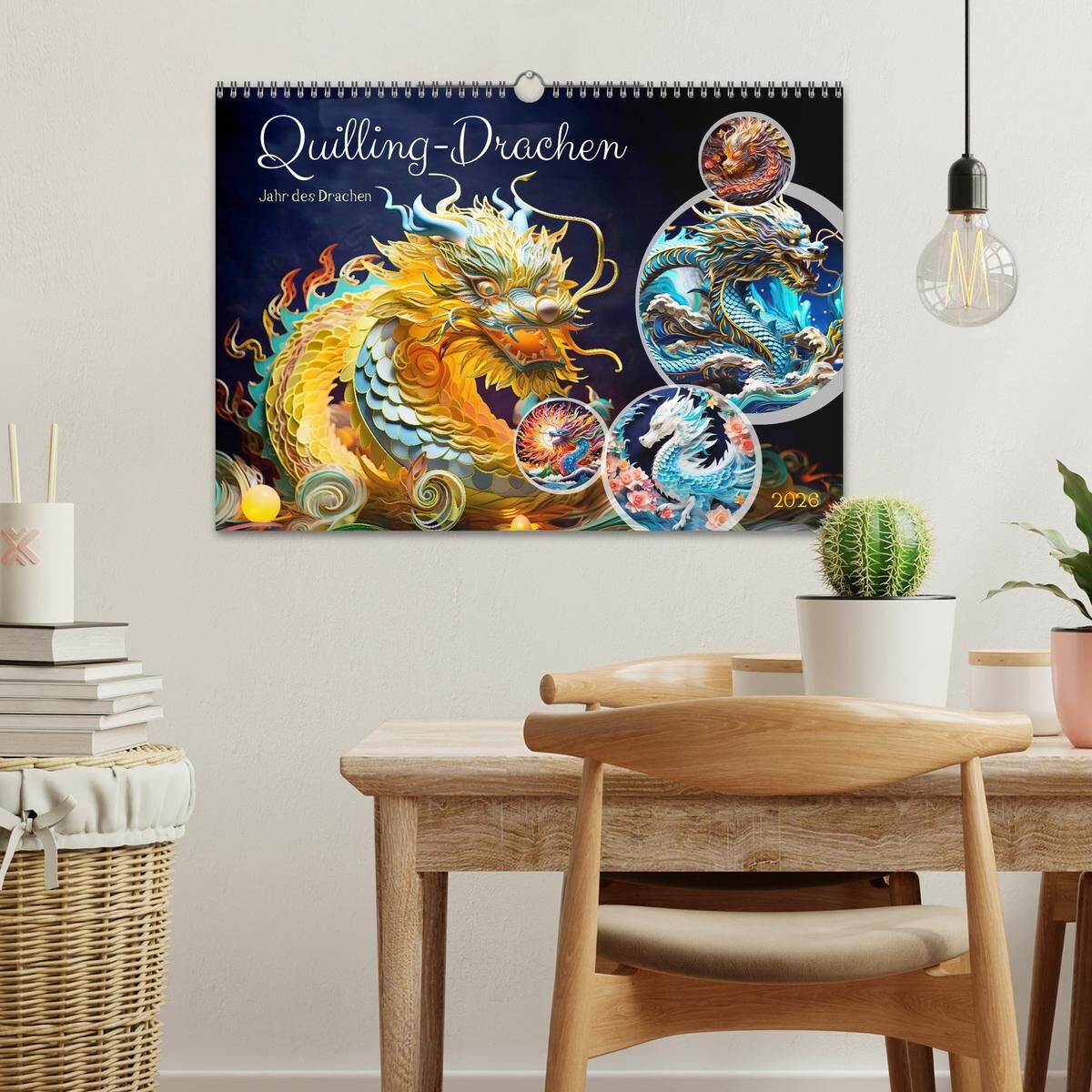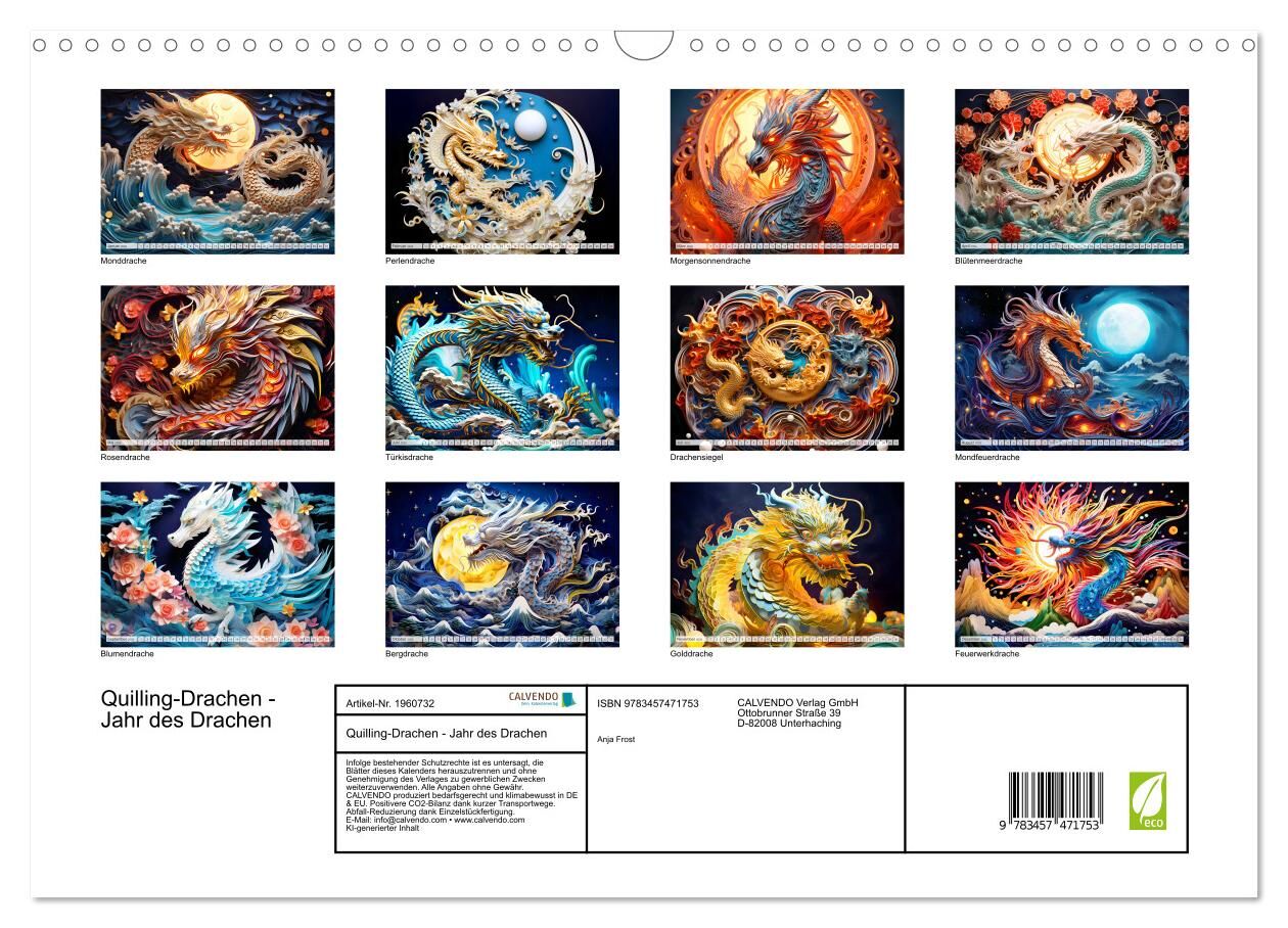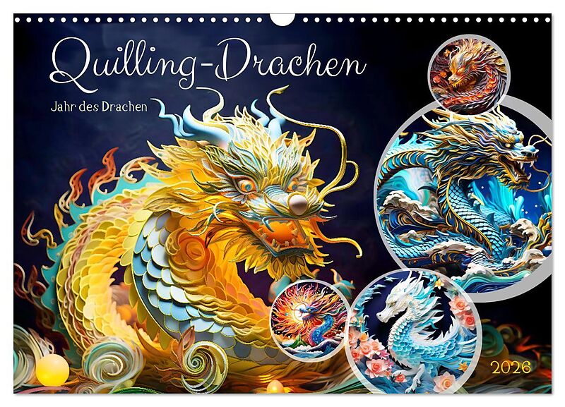 Quilling-Drachen - Jahr des Drachen (Wandkalender 2026 DIN A3 quer), CALVENDO Monatskalender