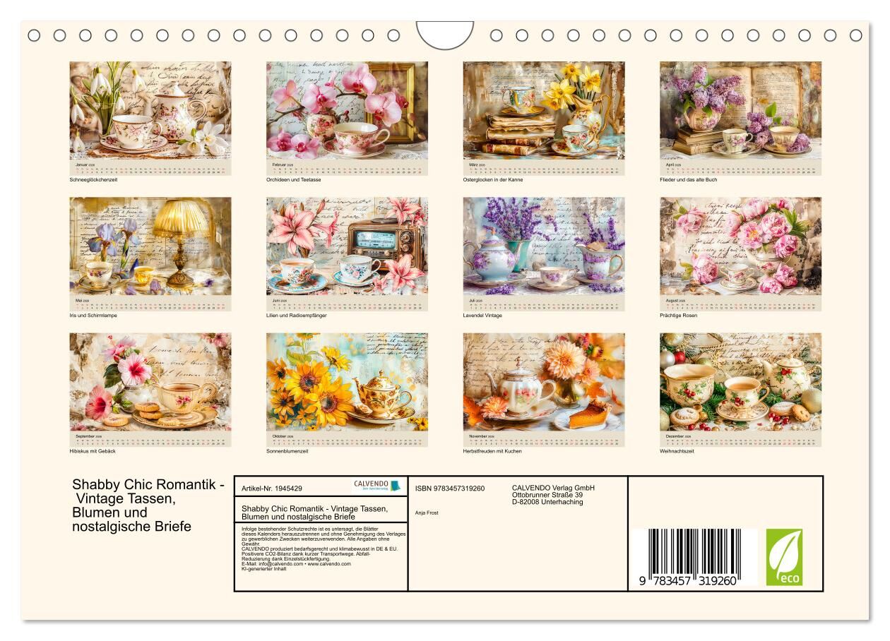 Entdecken Sie die zauberhafte Welt des Shabby Chic mit unserem exklusiven Kalender "Shabby Chic Romantik - Vintage Tassen, Blumen und nostalgische Briefe". Dieser wunderschöne KI-generierte Kalender ist perfekt für Liebhaber des romantischen Landhausstils und ...