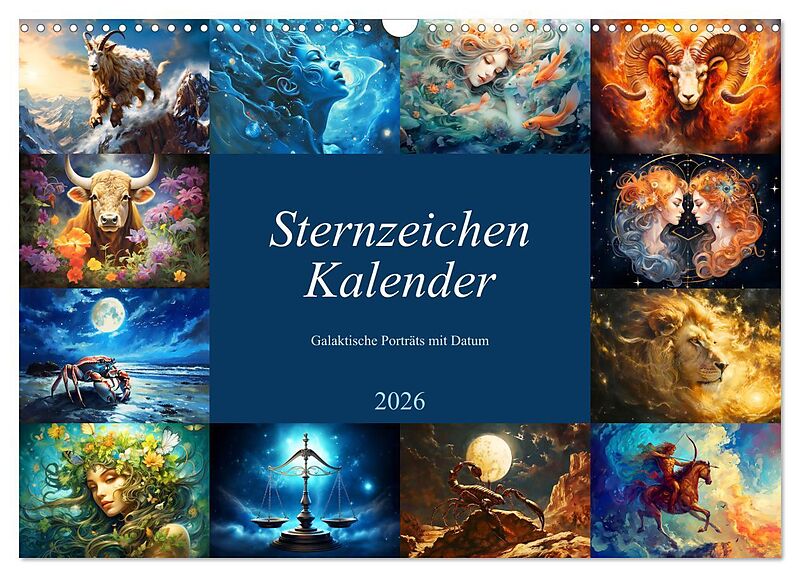 Sternzeichen-Kalender - Galaktische Porträts mit Datum (Wandkalender 2026 DIN A3 quer), CALVENDO Monatskalender