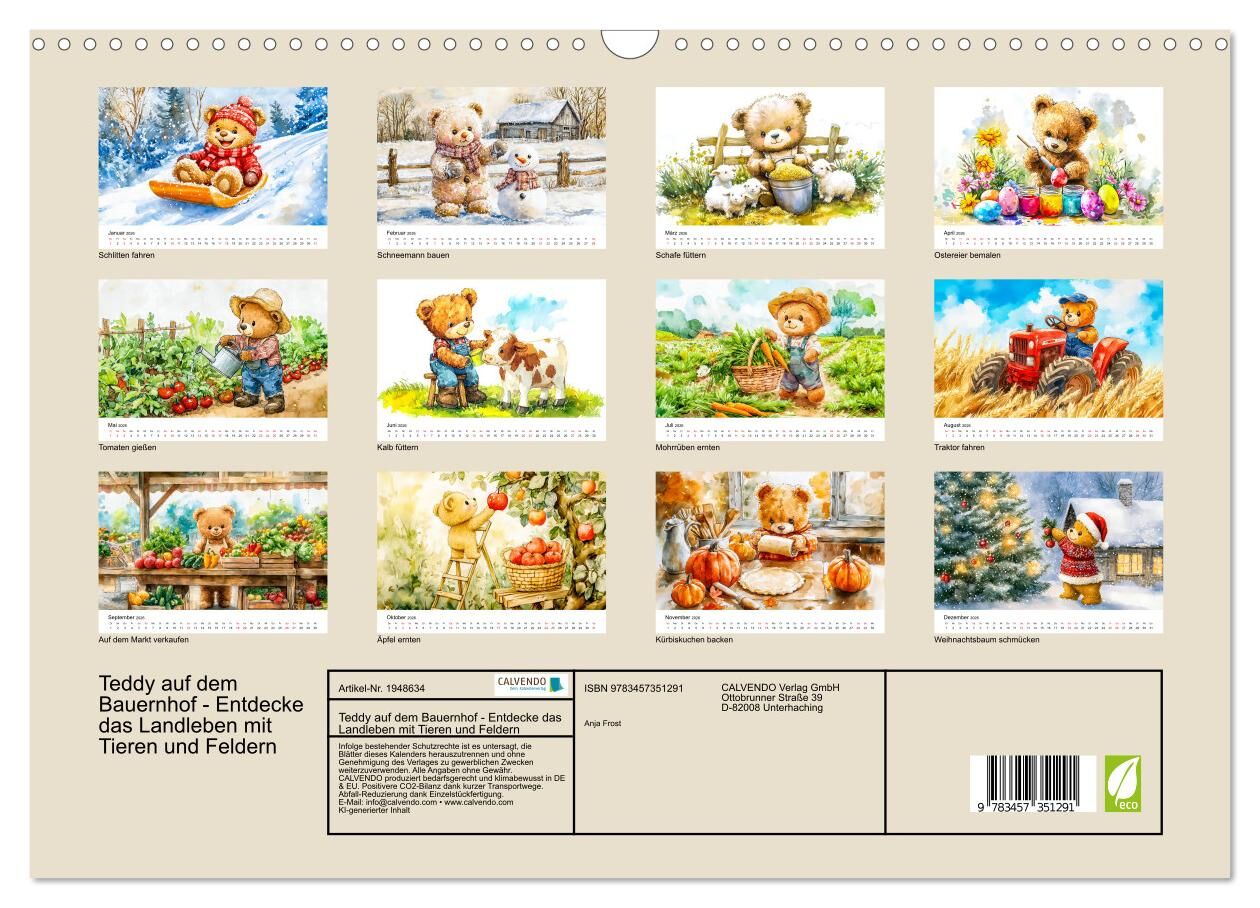 Teddy auf dem Bauernhof - Entdecke das Landleben mit Tieren und Feldern (Wandkalender 2026 DIN A3 quer), CALVENDO Monatskalender