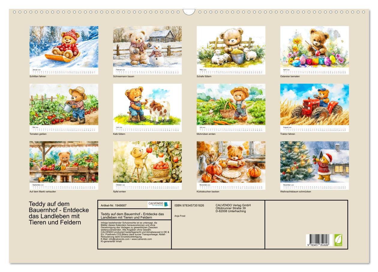 Entdecken Sie mit "Teddy auf dem Bauernhof - Entdecke das Landleben mit Tieren und Feldern" die wunderbare Welt des Landlebens durch die Augen eines niedlichen Teddybären! Dieser liebevoll gestaltete KI-generierte Kalender nimmt Kinder mit auf eine spannende R...