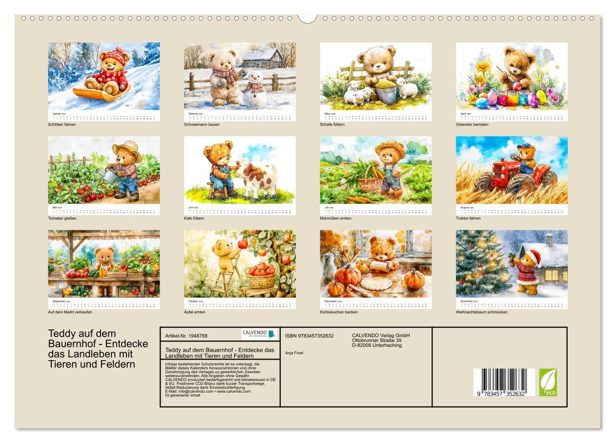 Teddy auf dem Bauernhof - Entdecke das Landleben mit Tieren und Feldern (hochwertiger Premium Wandkalender 2026 DIN A2 quer), Kunstdruck in Hochglanz