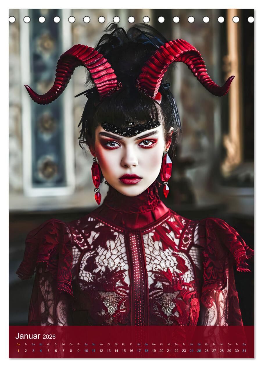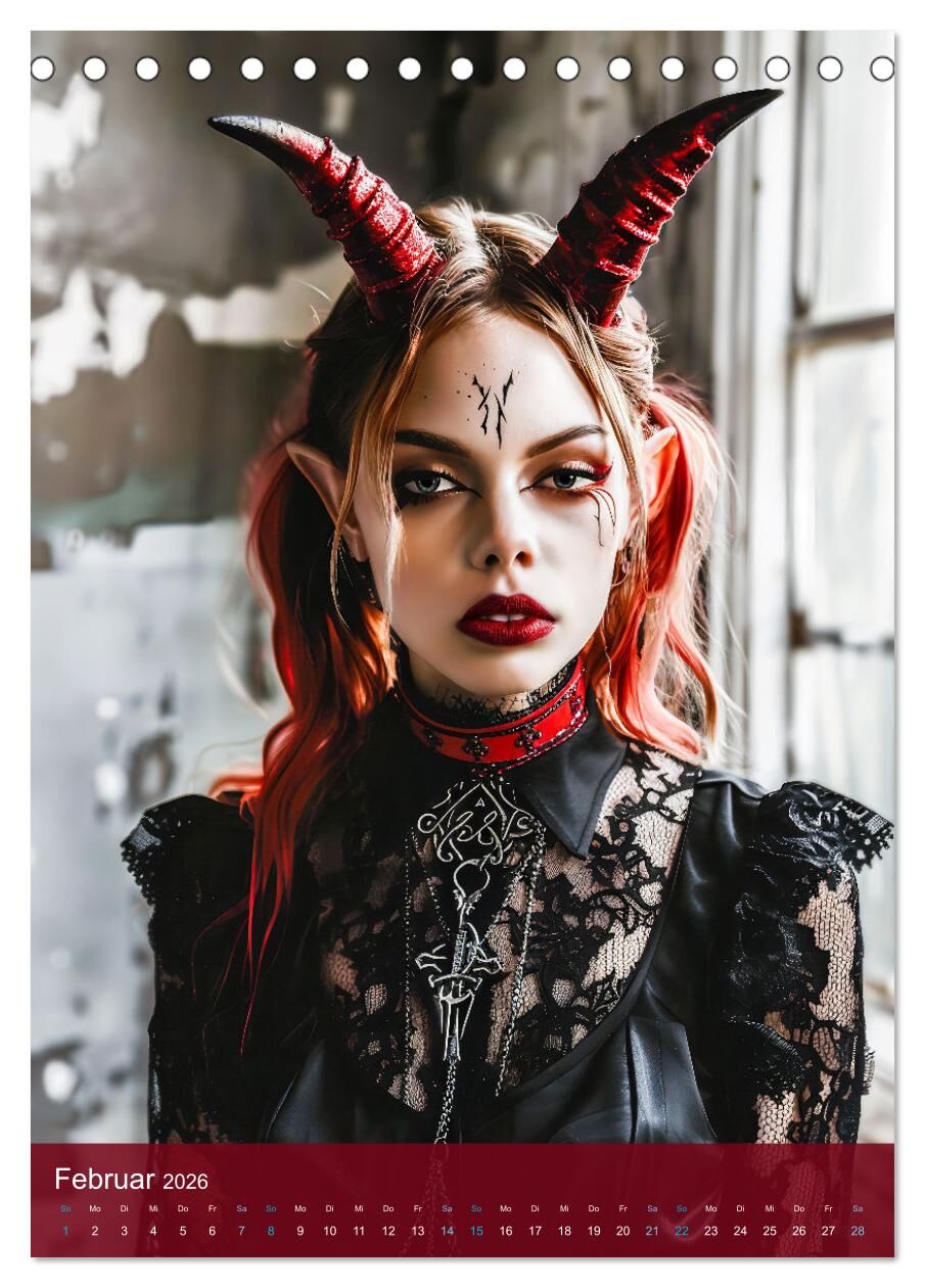 Teuflische Gothics - Gothic, Girls und Hörner (Tischkalender 2026 DIN A5 hoch), CALVENDO Monatskalender