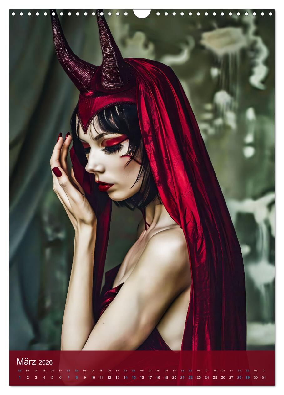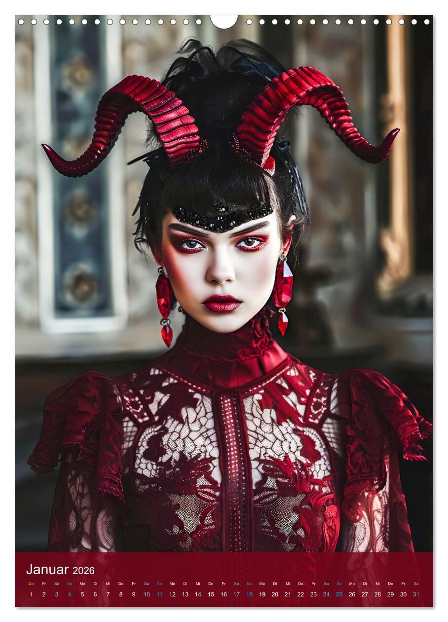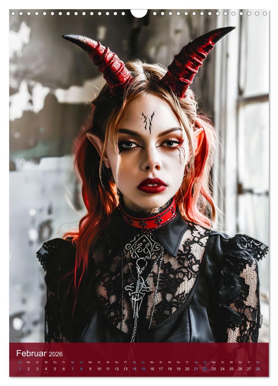 Teuflische Gothics - Gothic, Girls und Hörner (Wandkalender 2026 DIN A3 hoch), CALVENDO Monatskalender
