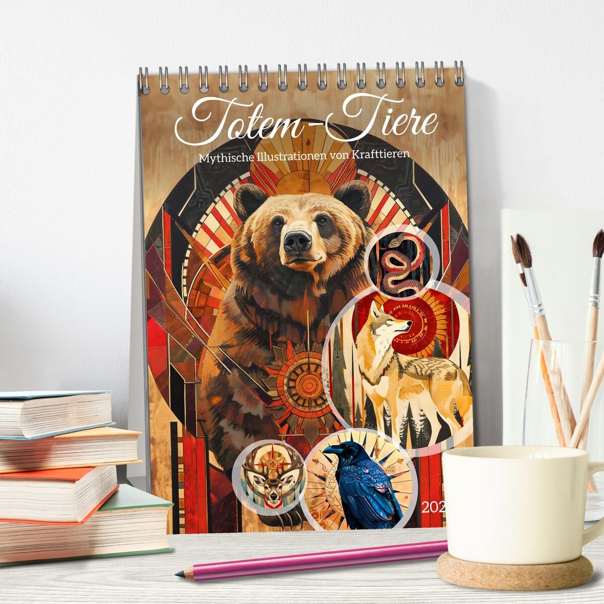 Entdecken Sie die tiefe Verbindung zwischen Mensch und Natur mit unserem Kalender "Totem-Tiere - Mythische Illustrationen von Krafttieren". Jeder Monat präsentiert ein einzigartiges Tier in faszinierenden KI-generierten Illustrationen, die von verschiedenen St...