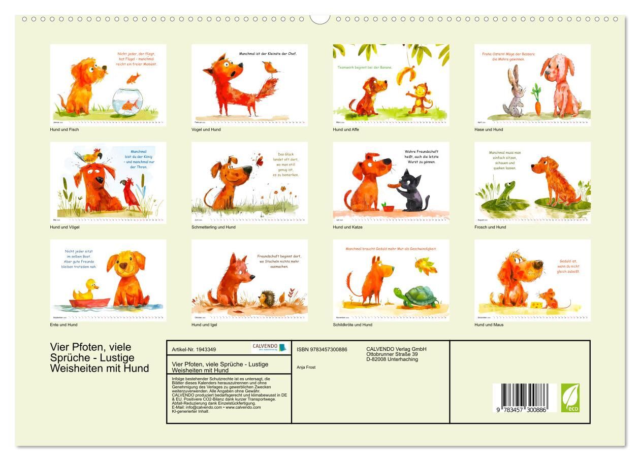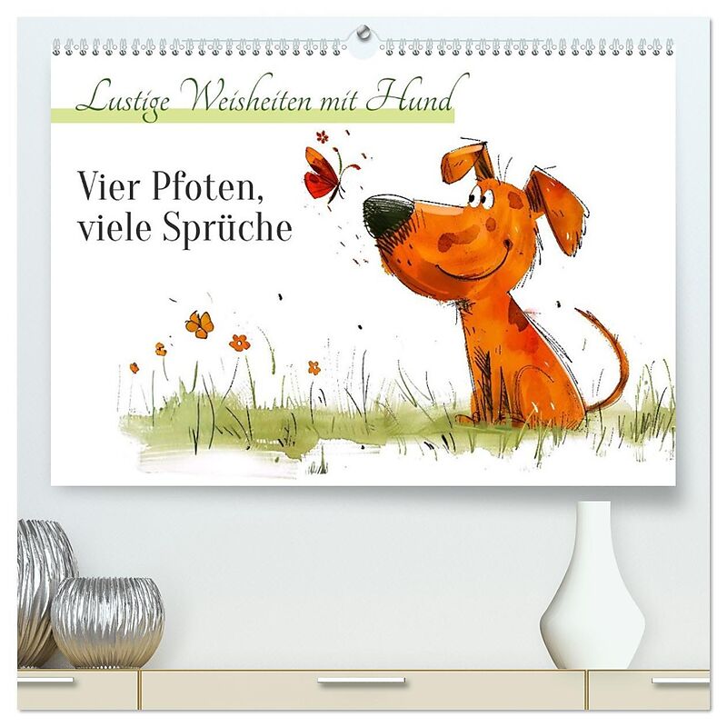 Vier Pfoten, viele Sprüche - Lustige Weisheiten mit Hund (hochwertiger Premium Wandkalender 2026 DIN A2 quer), Kunstdruck in Hochglanz