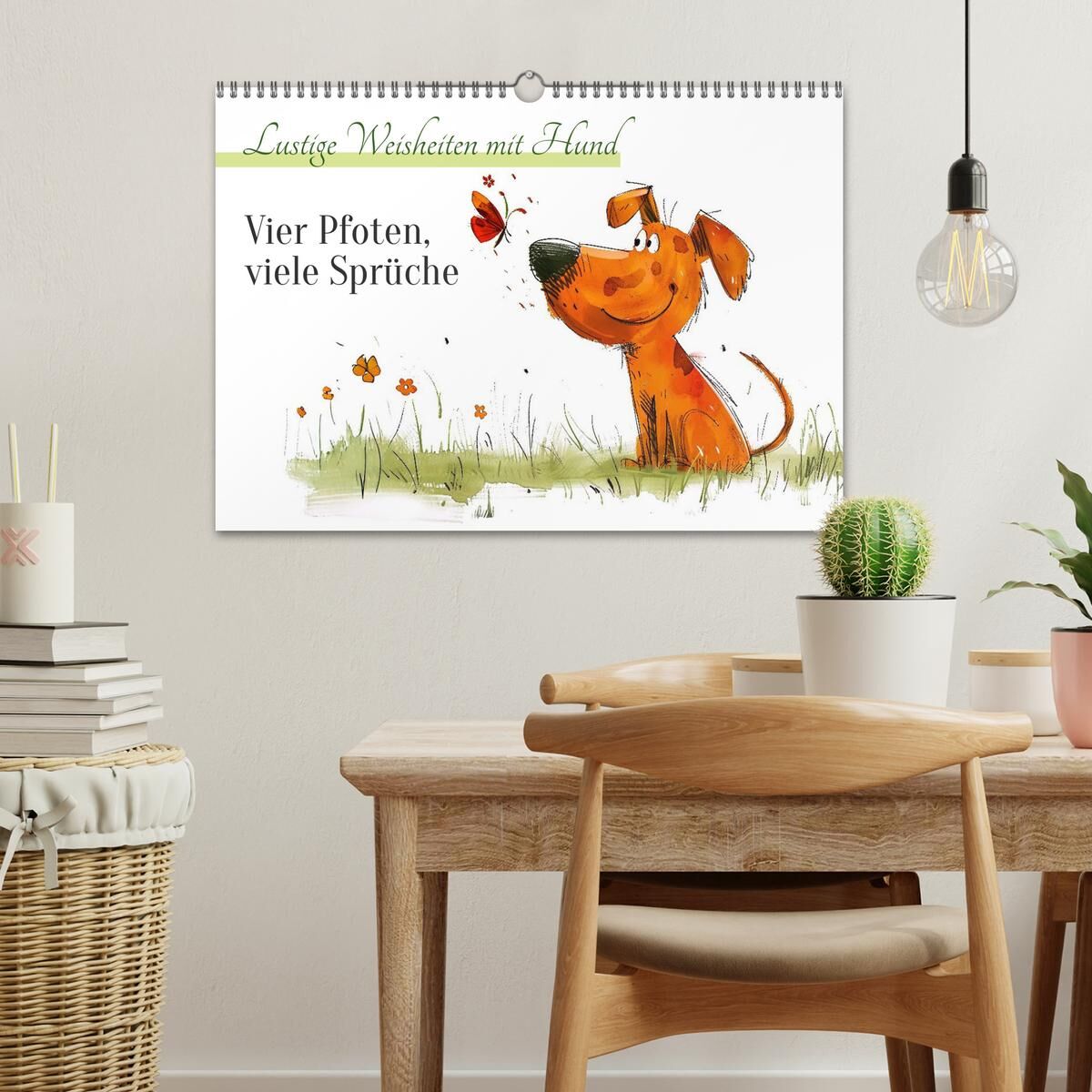 Der Kalender Vier Pfoten, viele Sprüche - Lustige Weisheiten mit Hund begleitet dich mit liebevoll KI-illustrierten Hundemotiven und klugen, witzigen Weisheiten durchs Jahr. Ob schmunzelnd, nachdenklich oder einfach herzerwärmend dieser Kalender bringt Monat f...