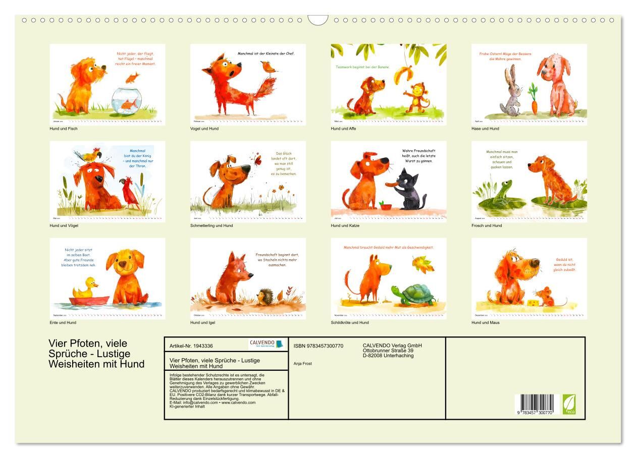 Der Kalender Vier Pfoten, viele Sprüche - Lustige Weisheiten mit Hund begleitet dich mit liebevoll KI-illustrierten Hundemotiven und klugen, witzigen Weisheiten durchs Jahr. Ob schmunzelnd, nachdenklich oder einfach herzerwärmend dieser Kalender bringt Monat f...